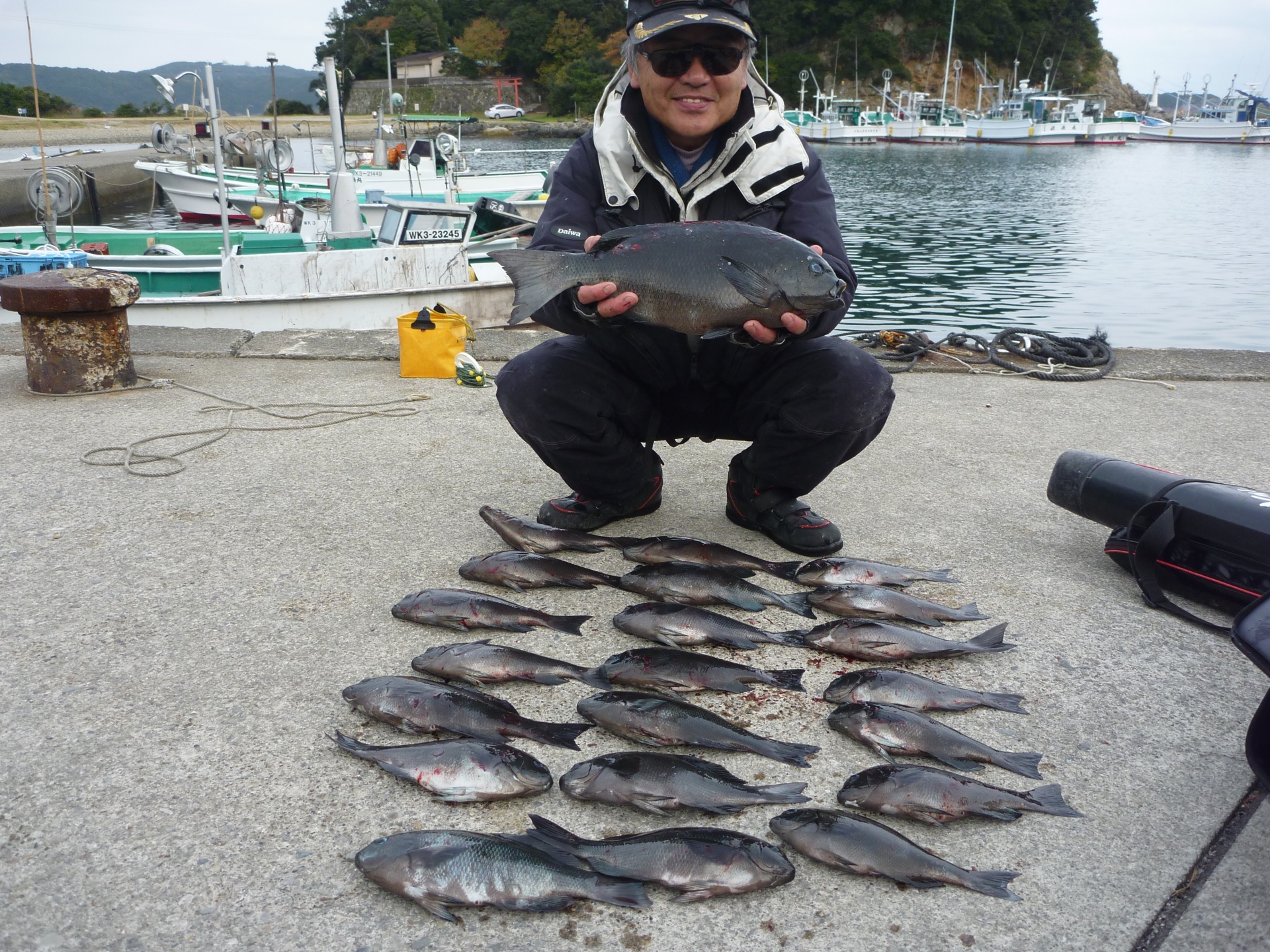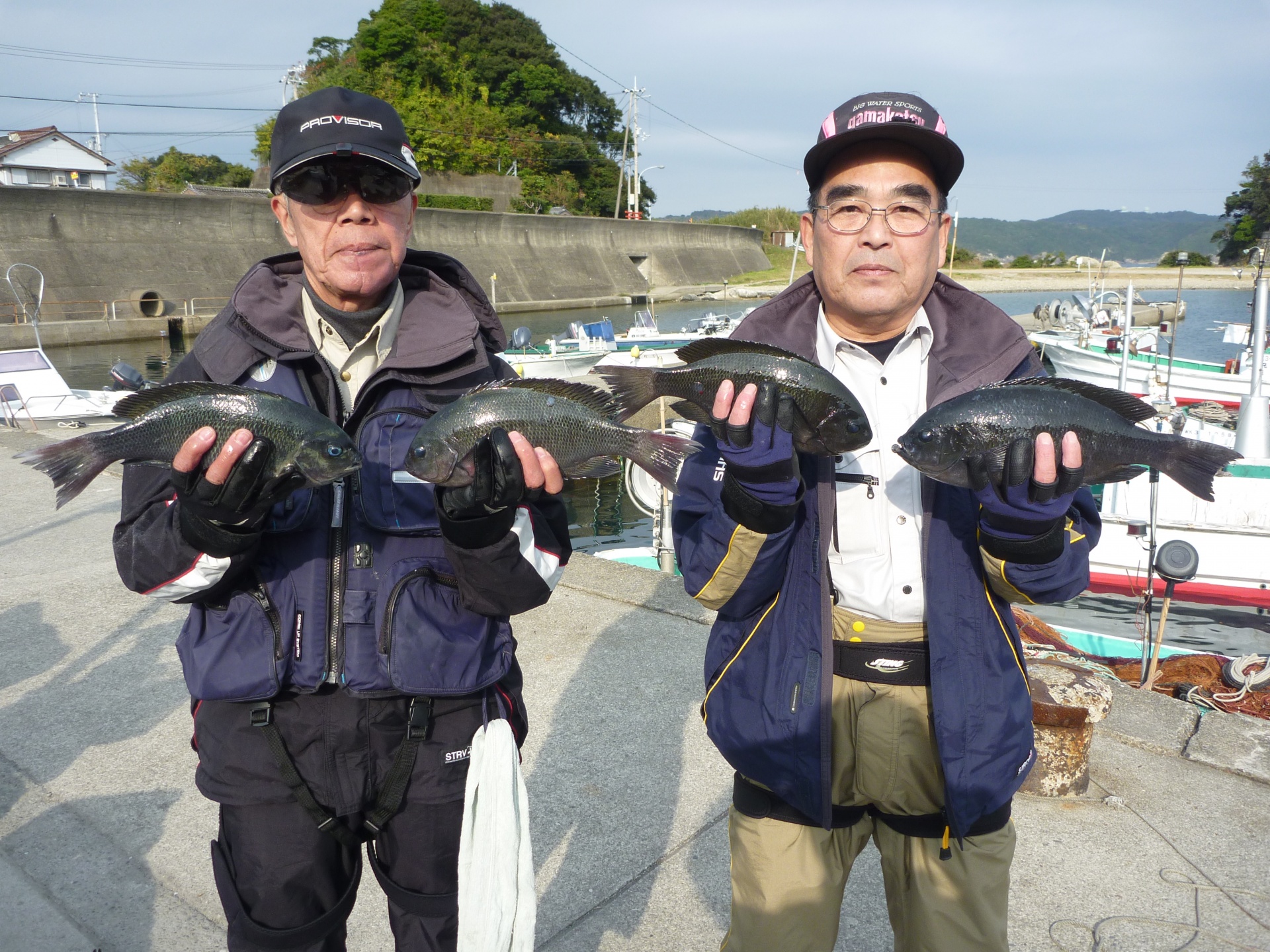 白崎で田辺市の松野さん2人で30~34cmのグレ5匹