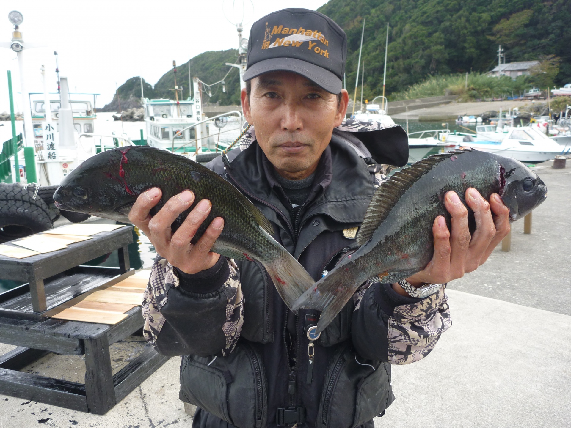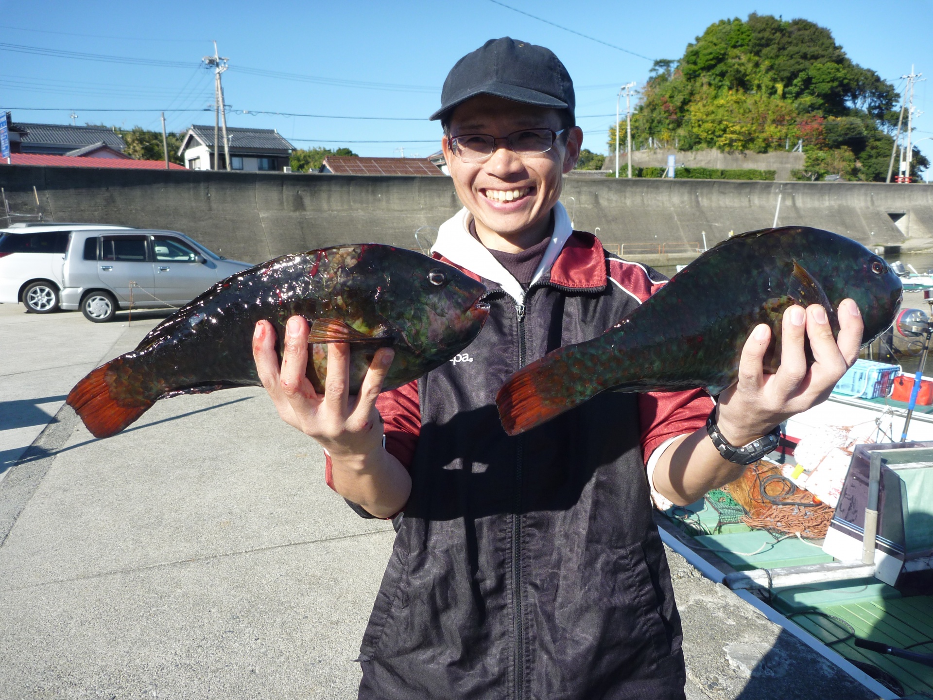 武八で田辺市の古久保さんヒブダイ2匹