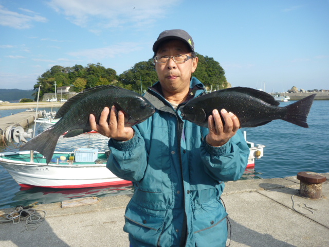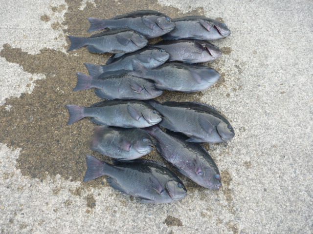 金床で田辺市の秋月さん28~32cmのグレ6匹と26cmのイサギ4匹