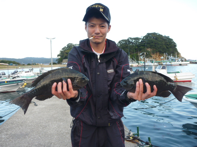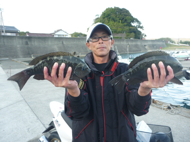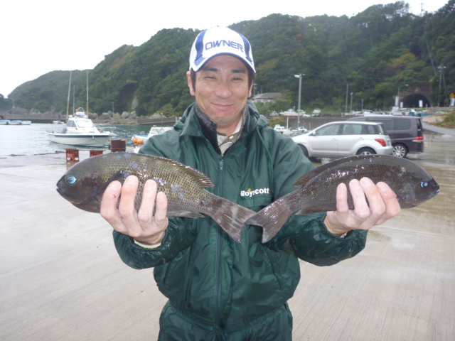 大サバで勝浦町の上地さん36cmのグレと30cmのイサギ1匹