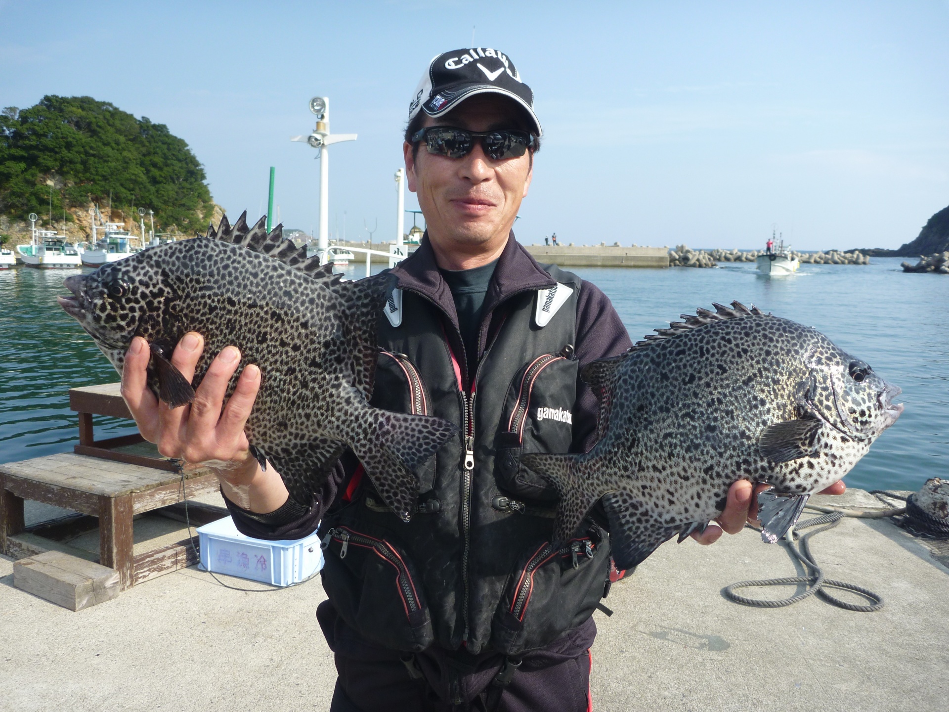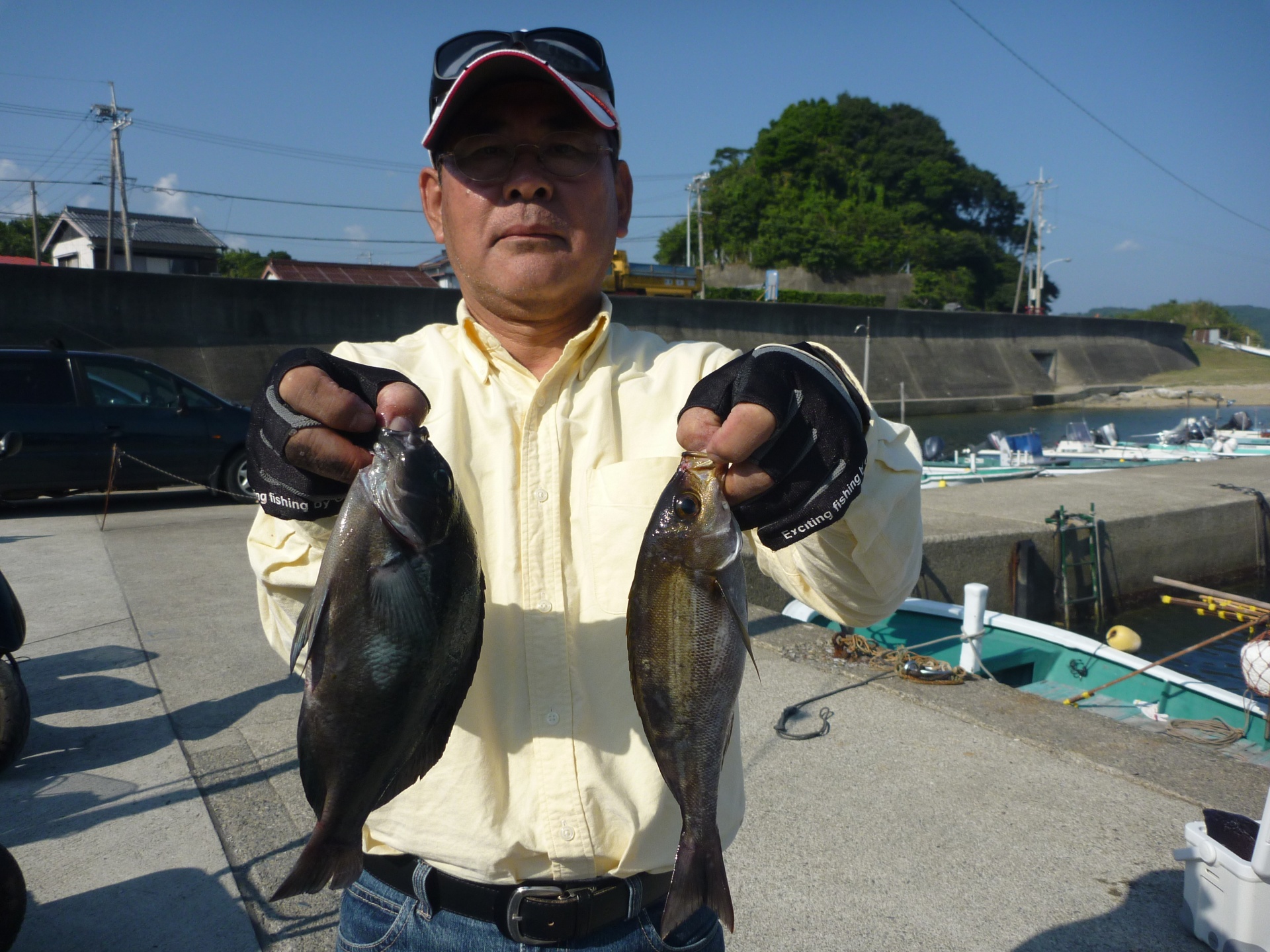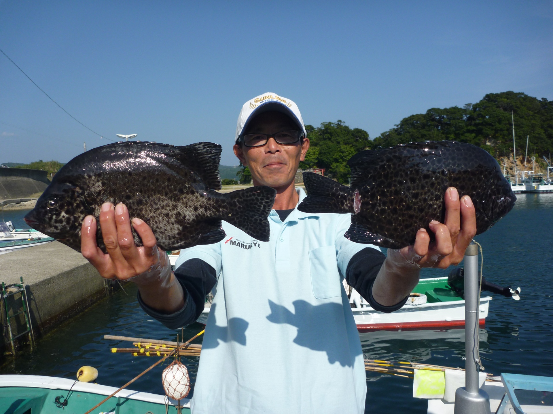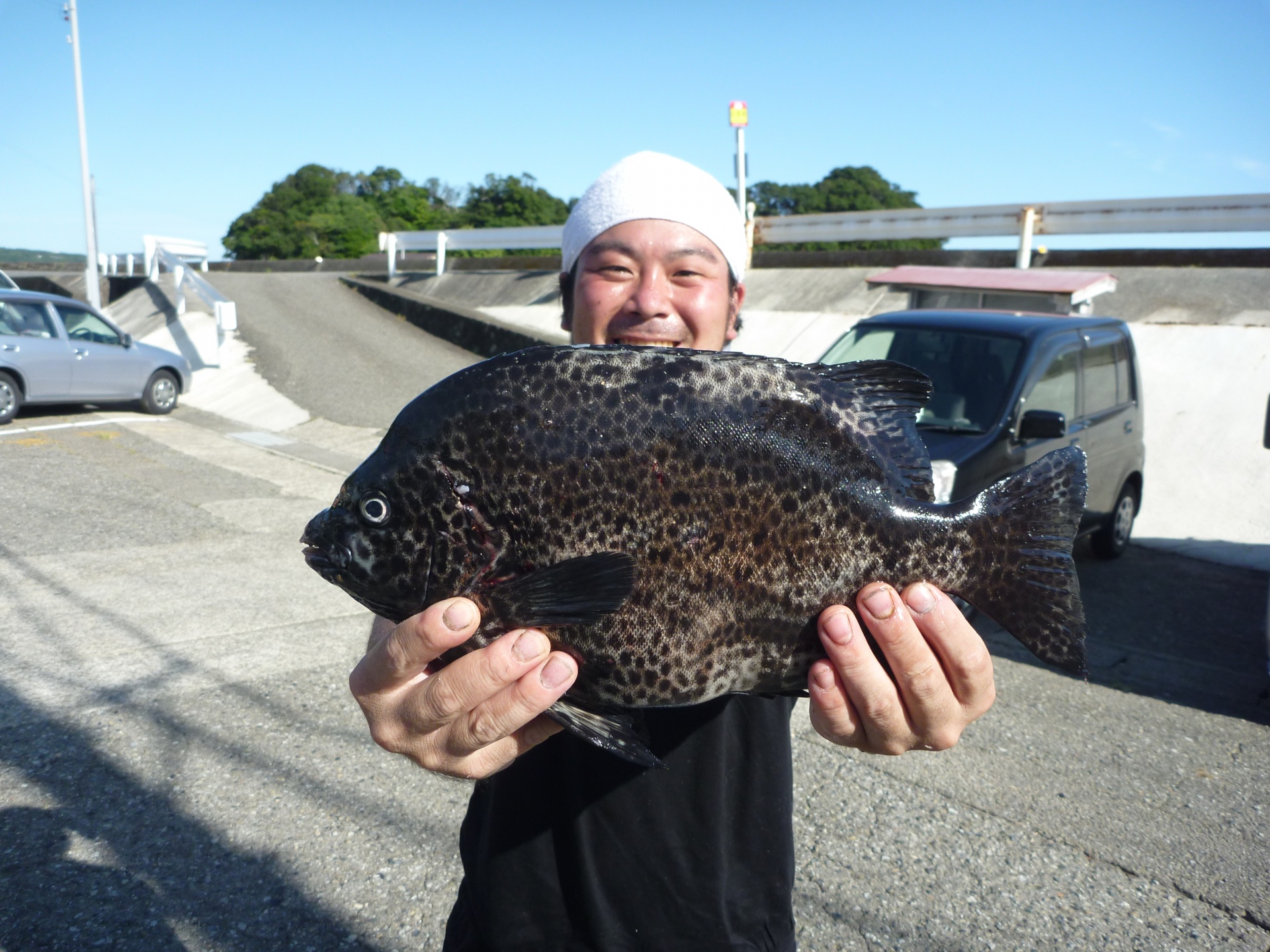 丸島で釣振興会の松田さん34cmの石垣1匹