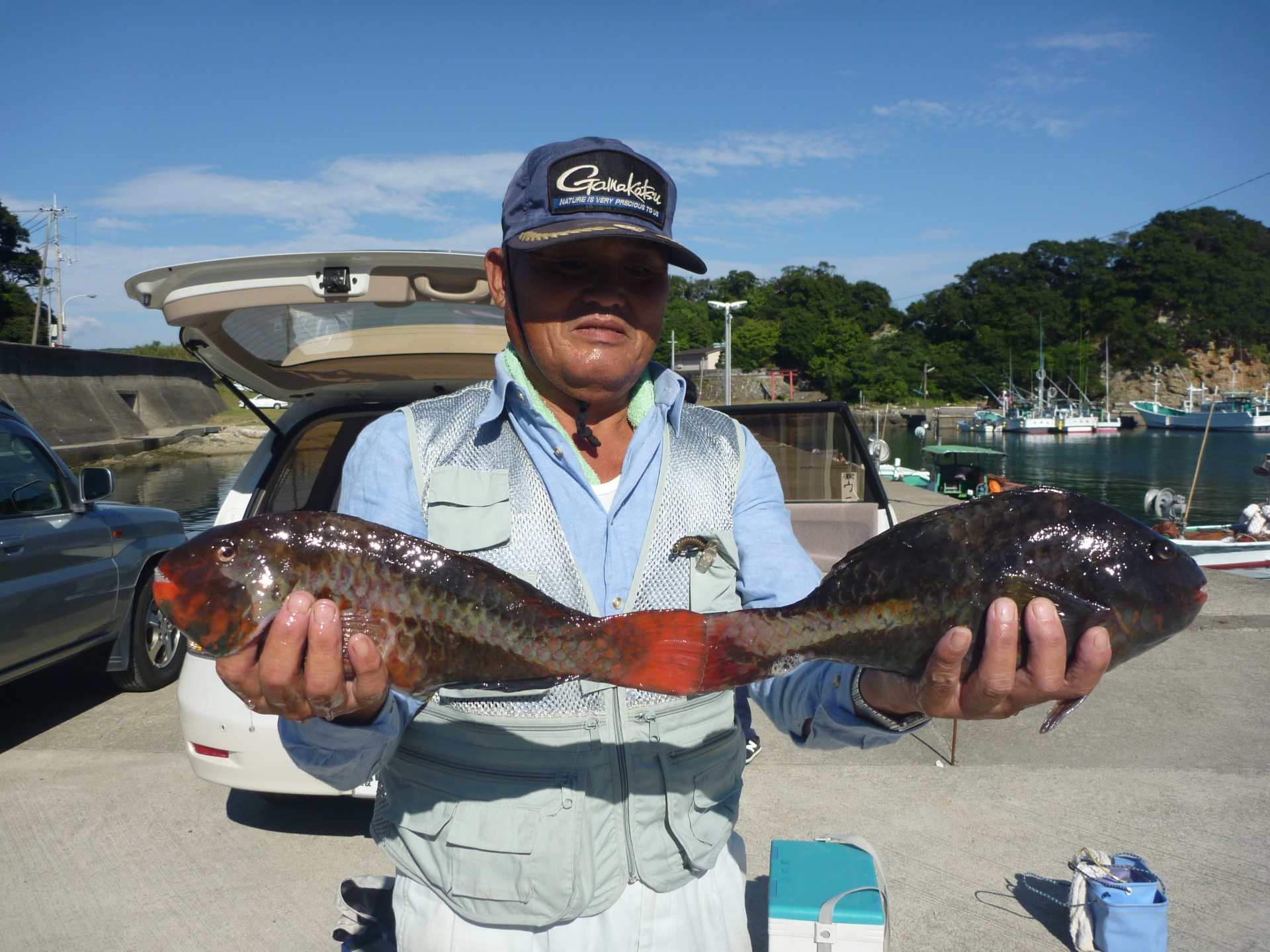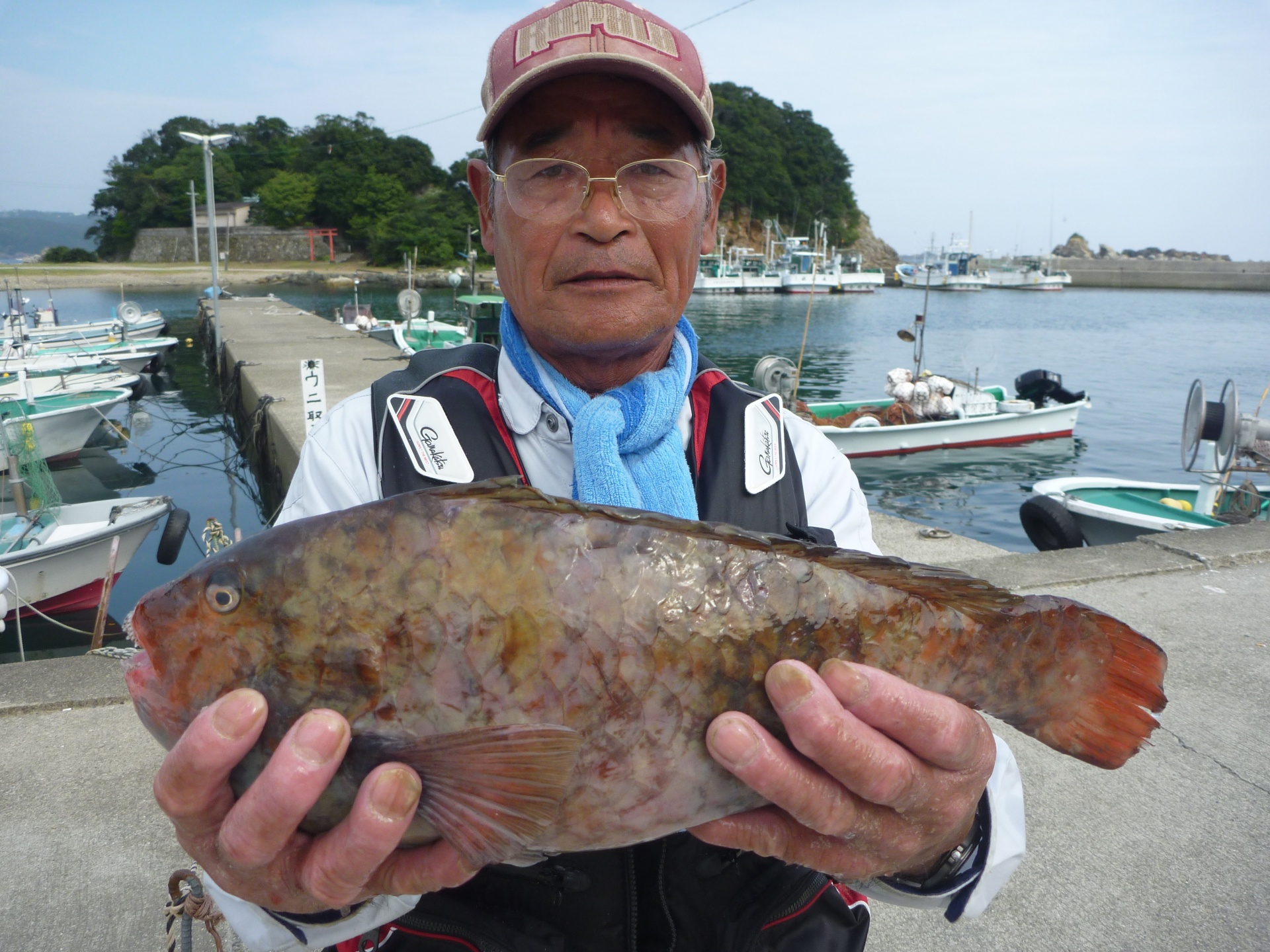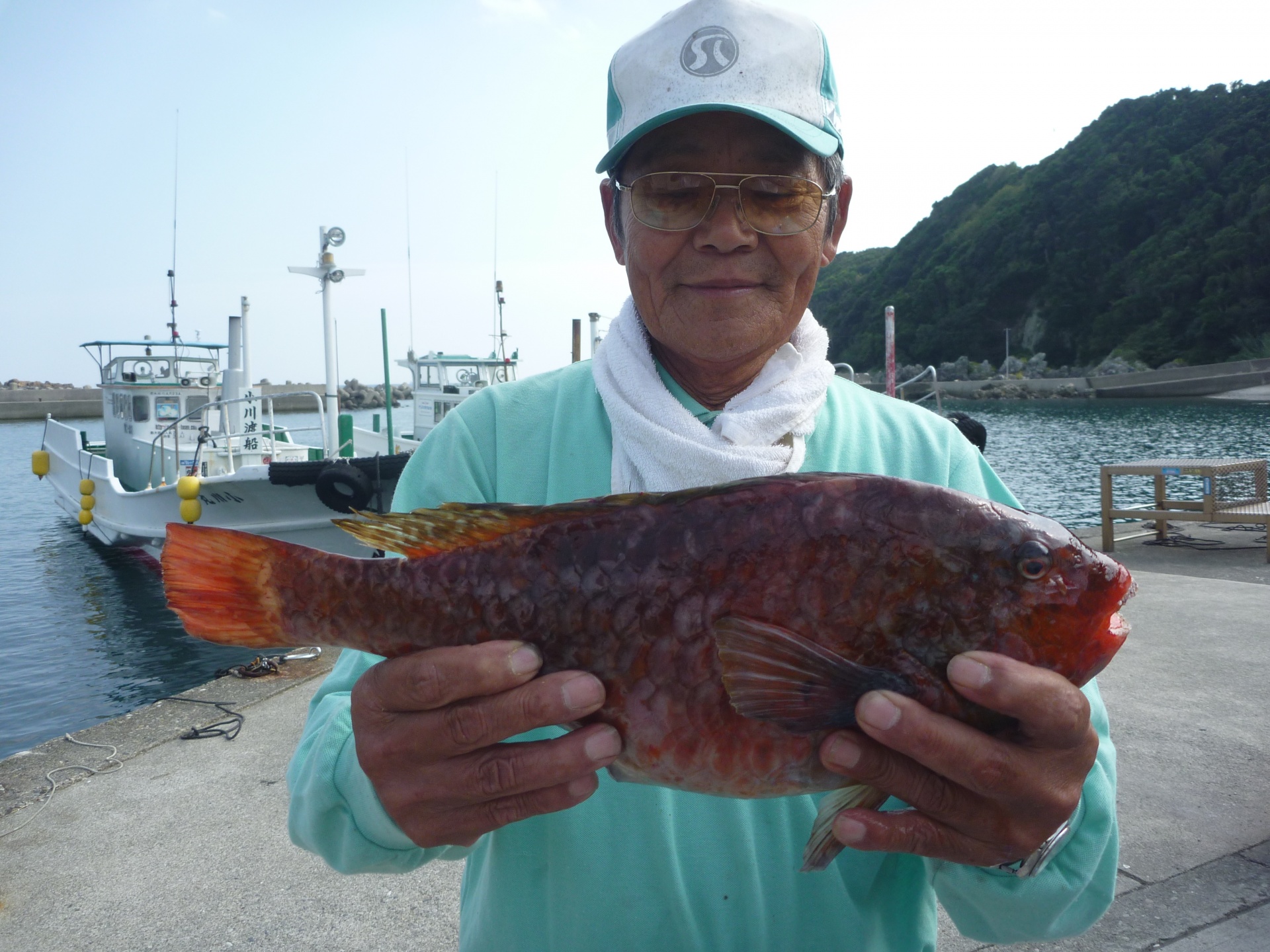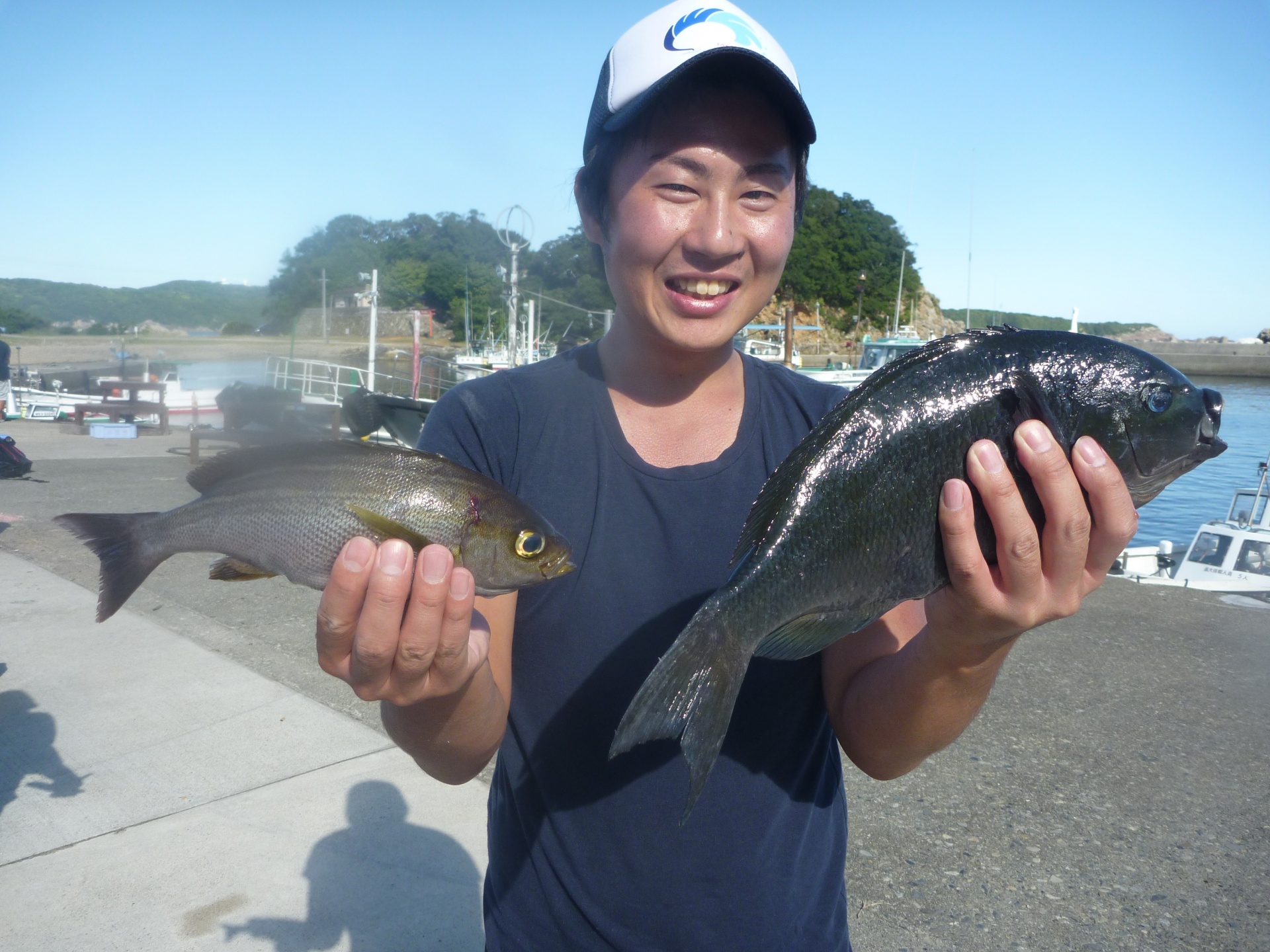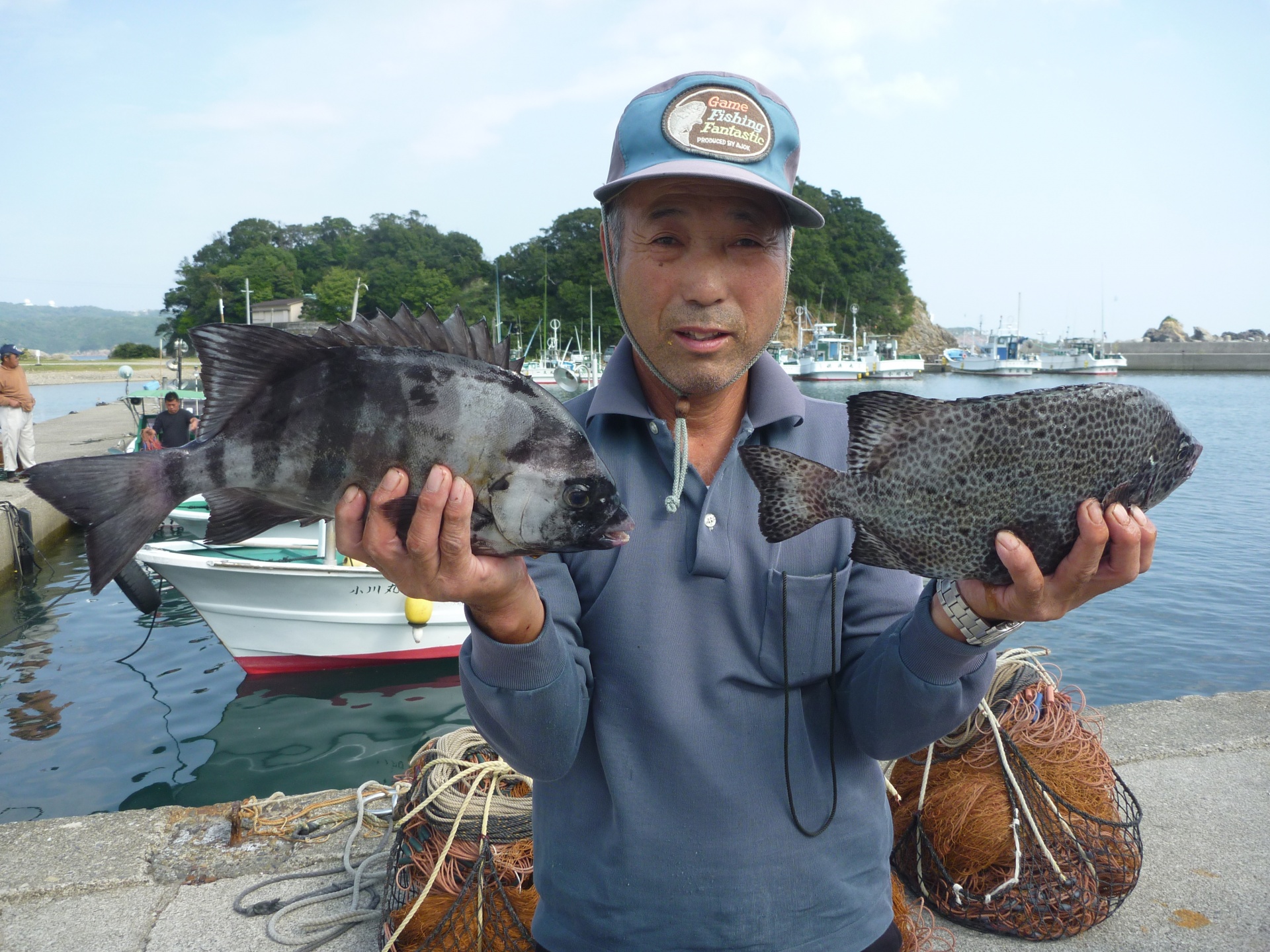 丸島で釣振興会の松田さん34cmの石垣1匹