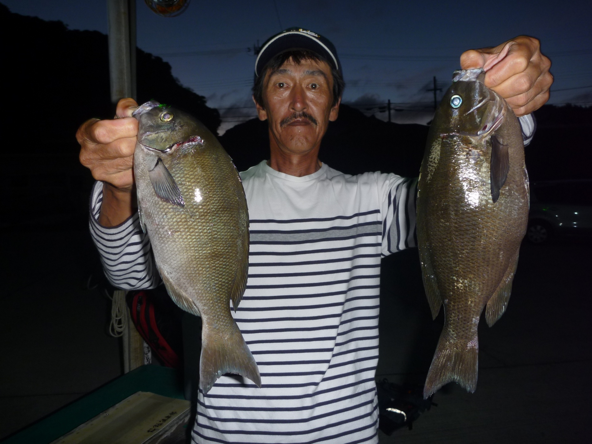 ハリス3 針6 フカセ5ヒロ 親で地元の西田さん53cmのコロダイと35cmの真鯛 半夜