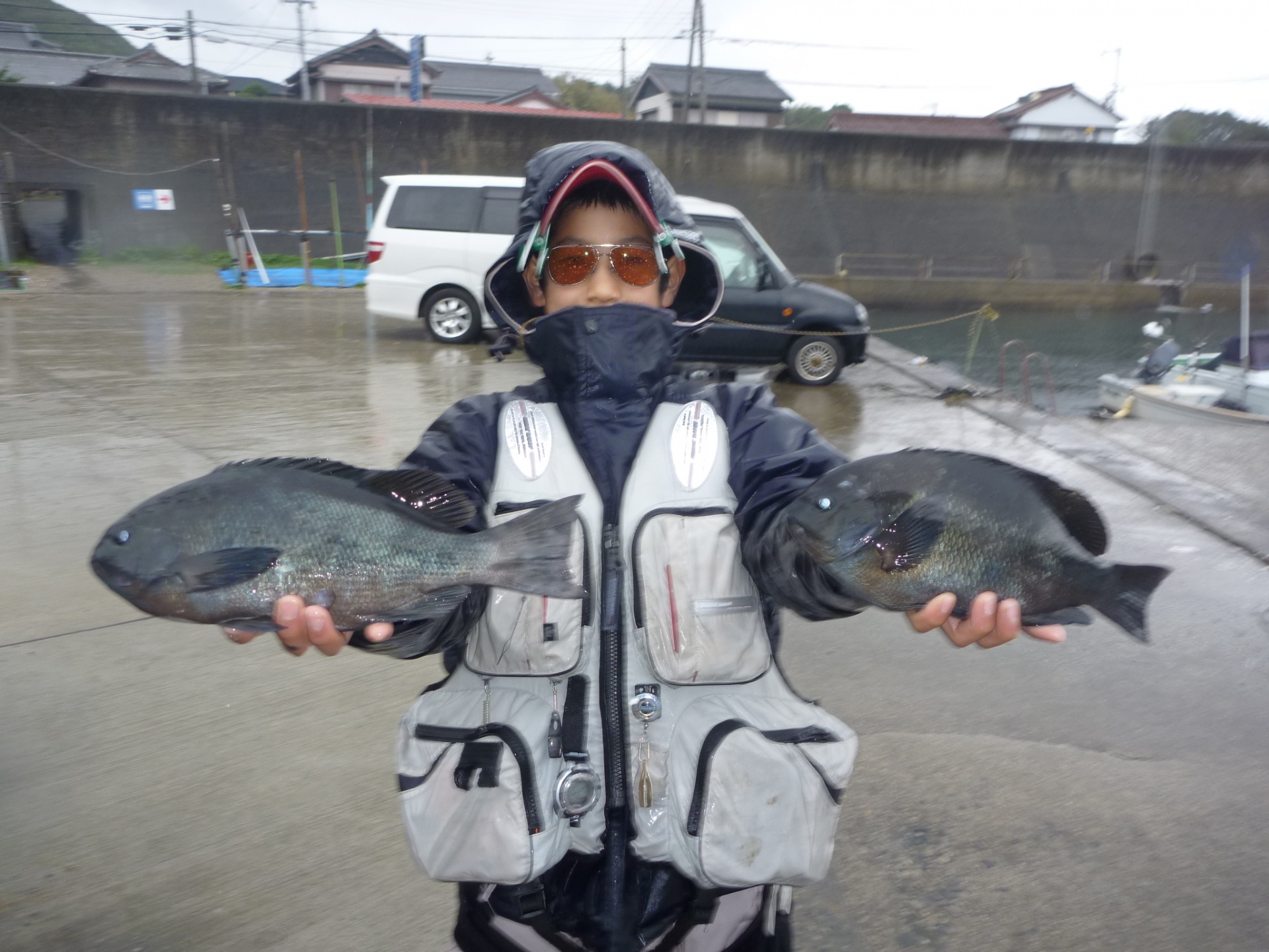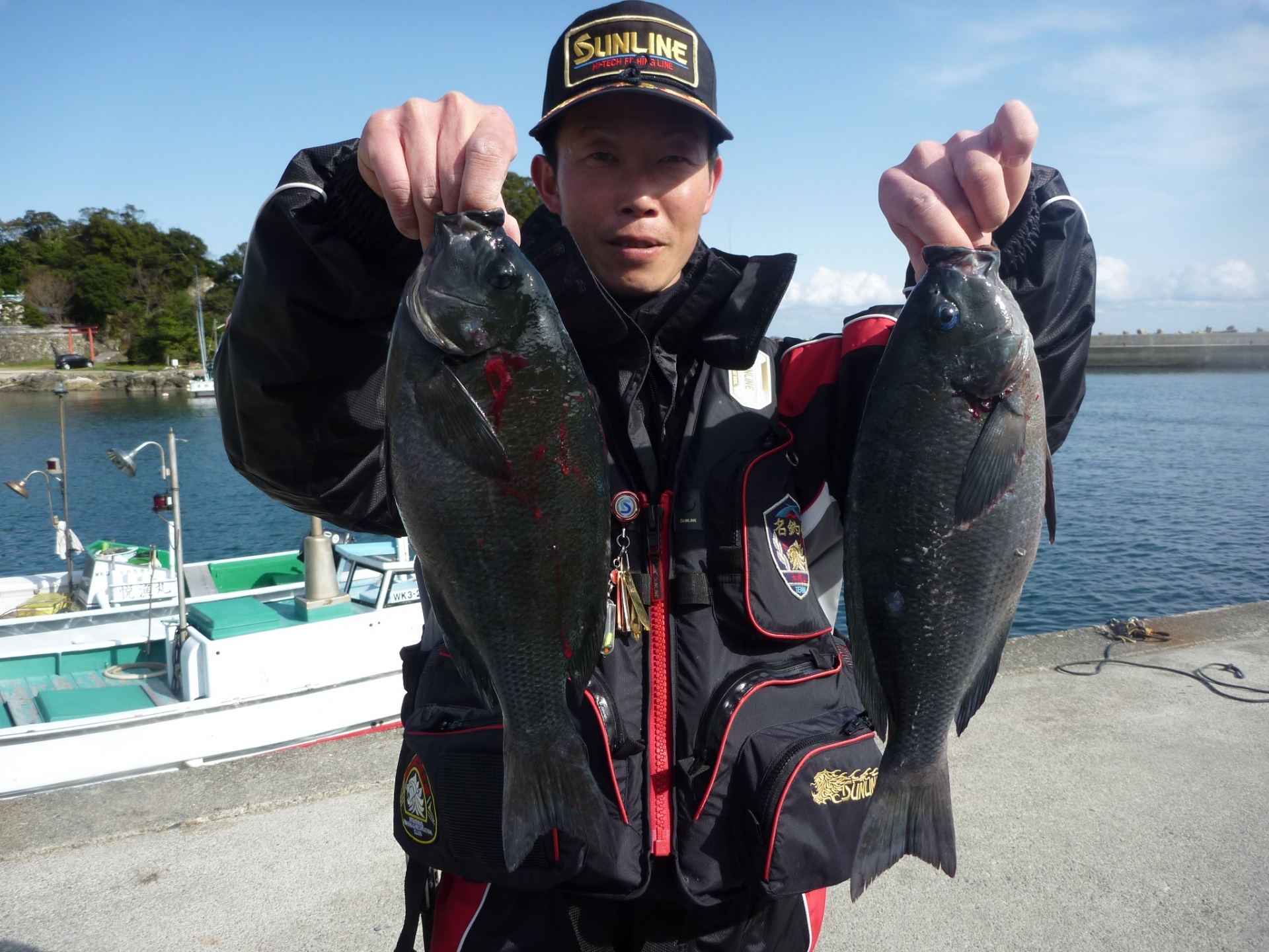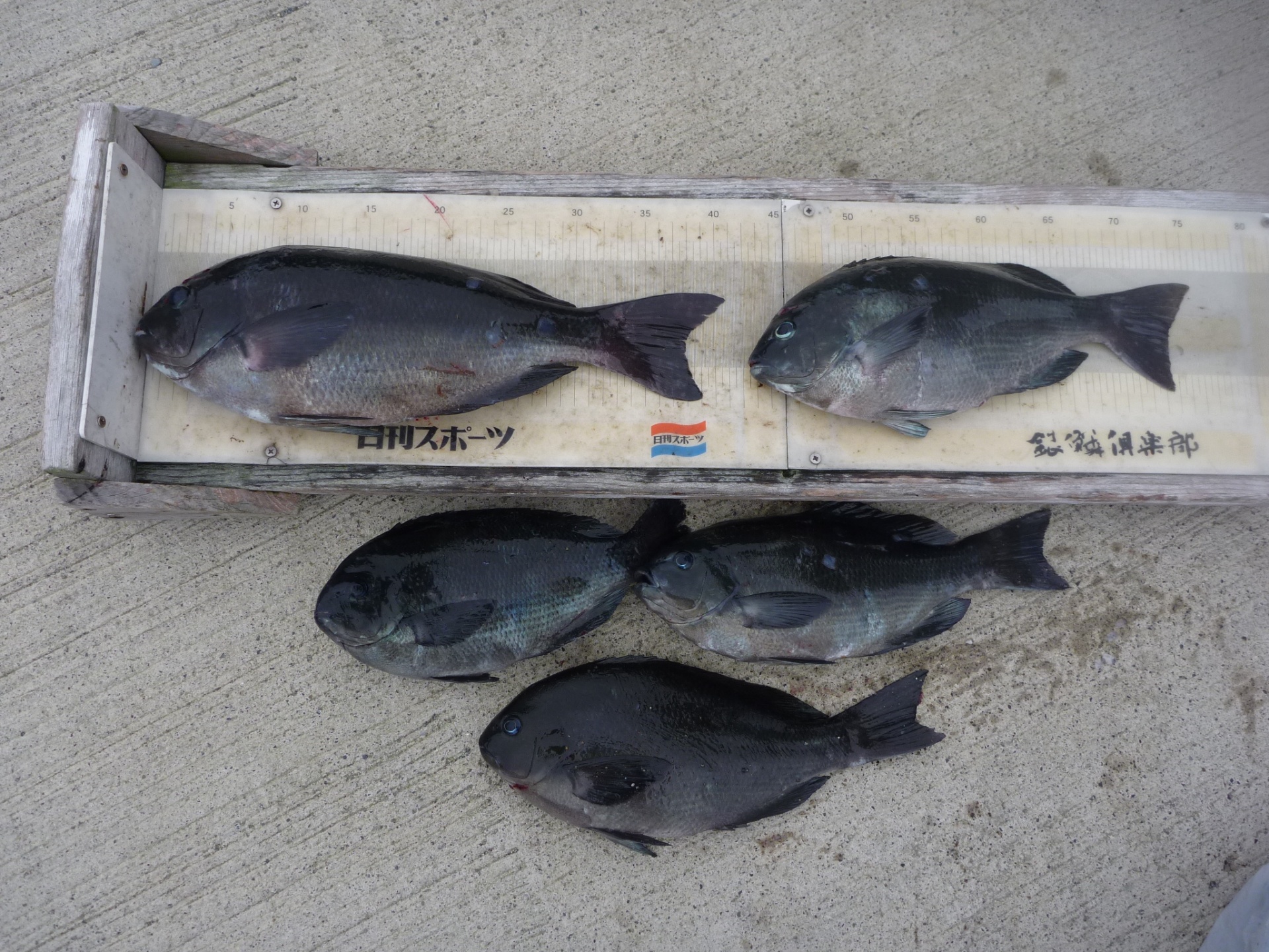 親で兼田さん35cm1匹とイサギ4匹