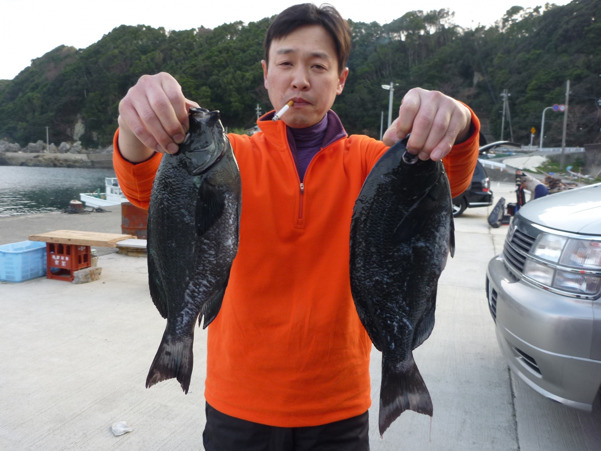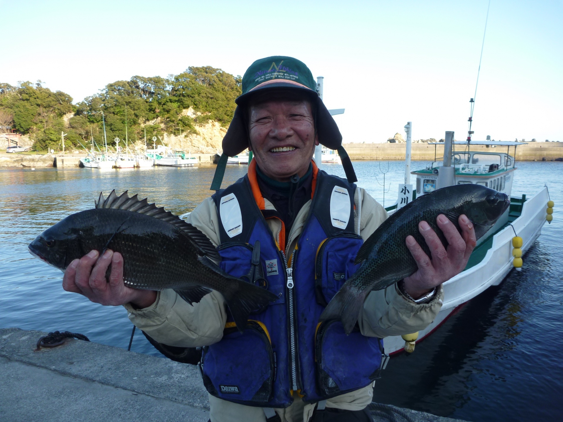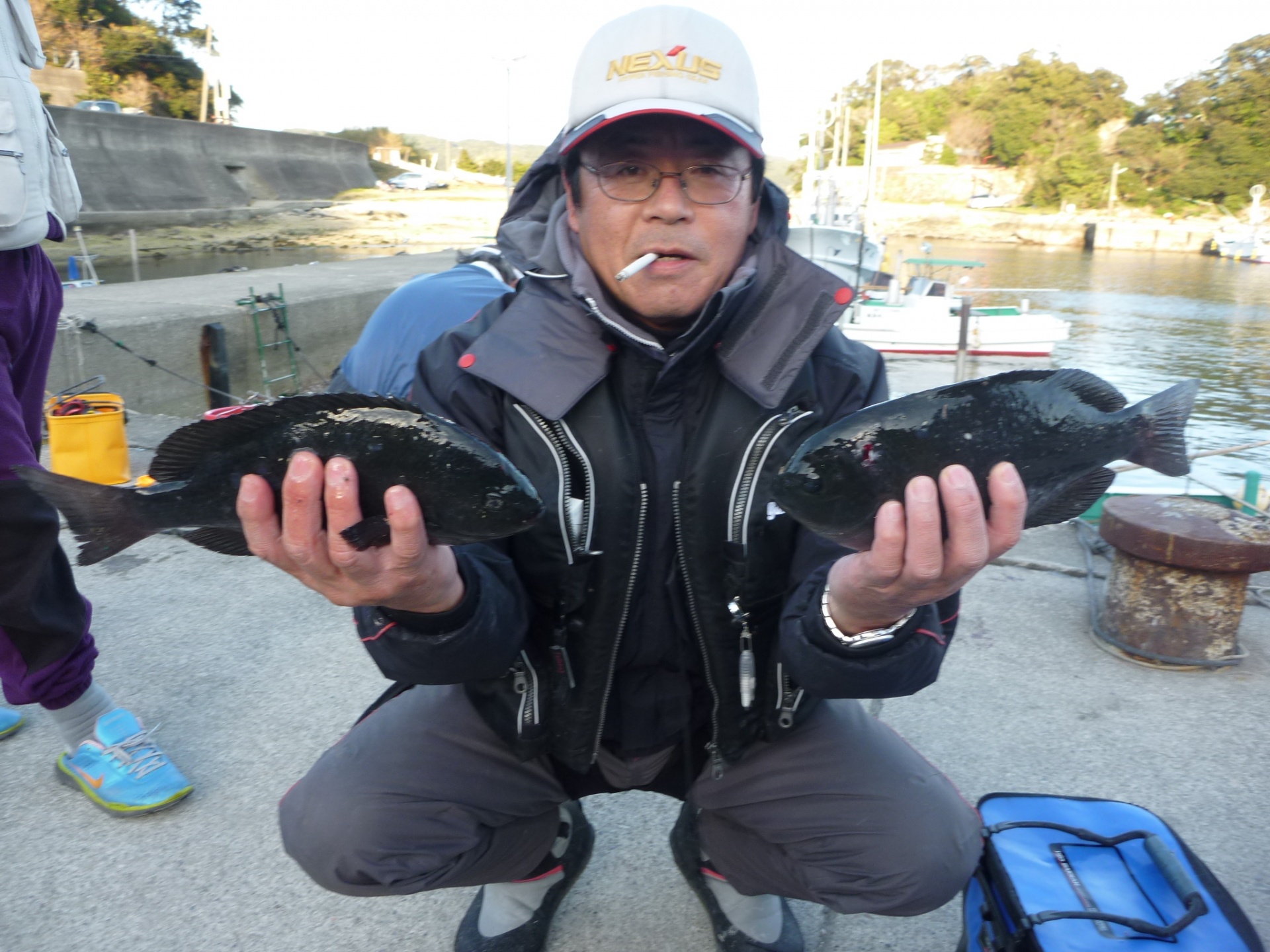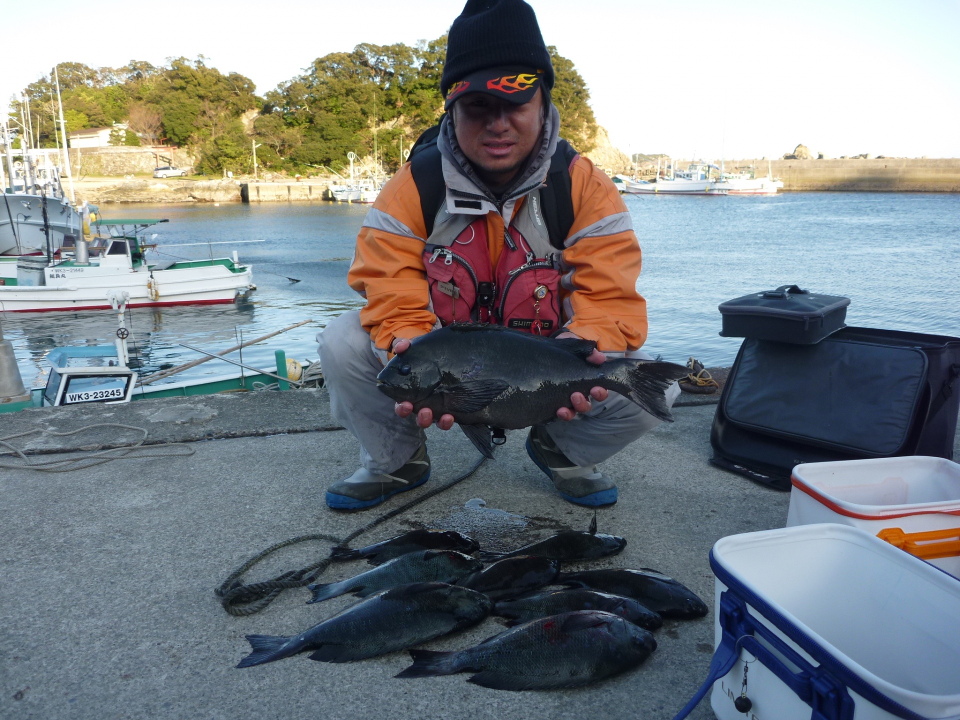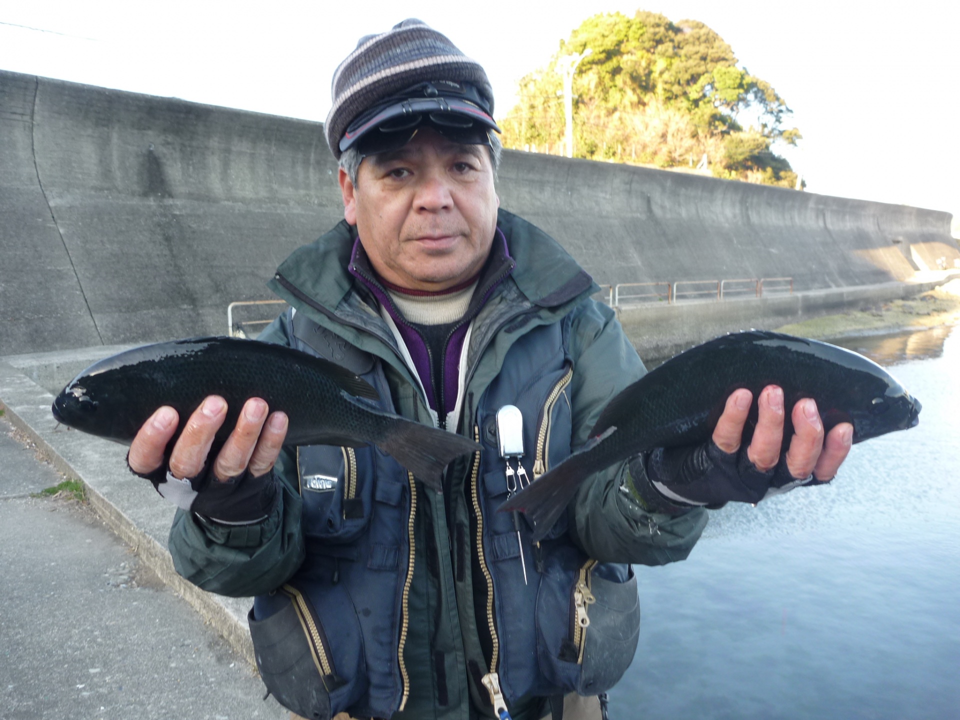 ハリス2,5 針6 フカセ4ヒロ 双子の親で岸和田市の古川さん2人で30~37cmのグレ8匹 双子の親で和歌山市の井原さん2人で30~35cmのグレ6匹