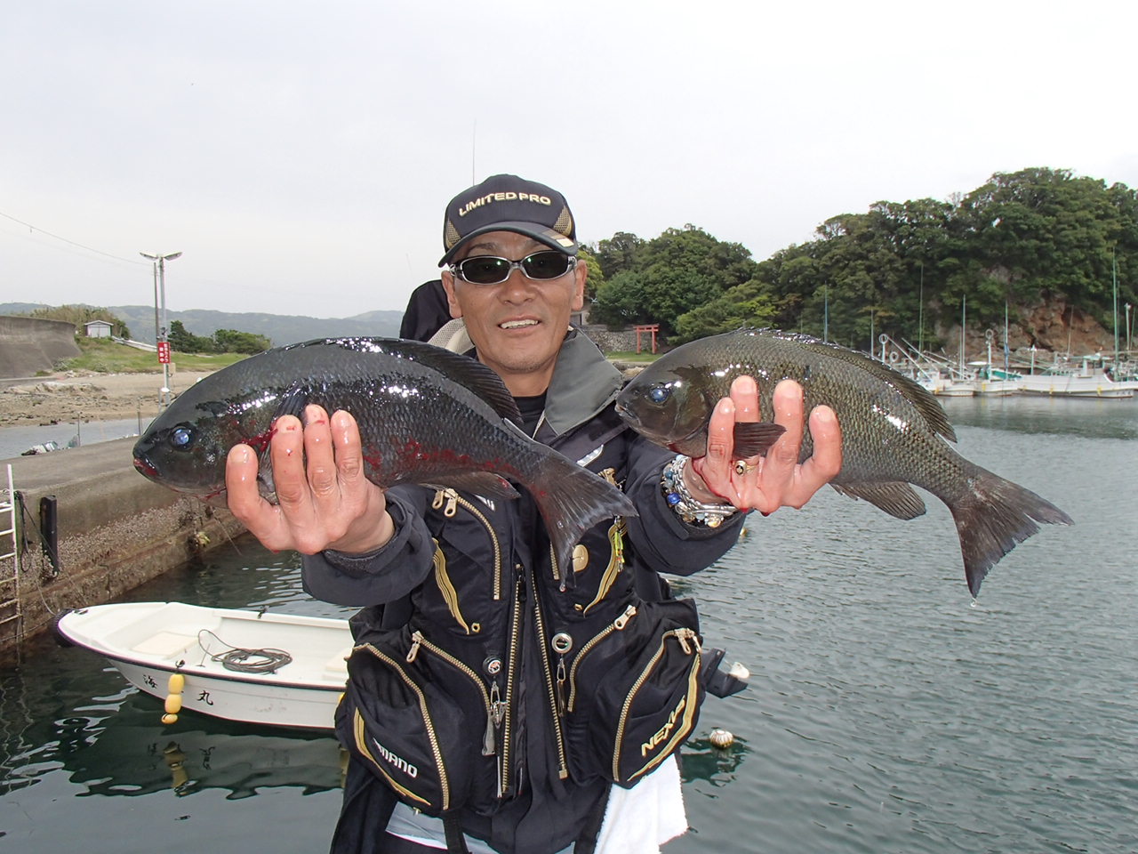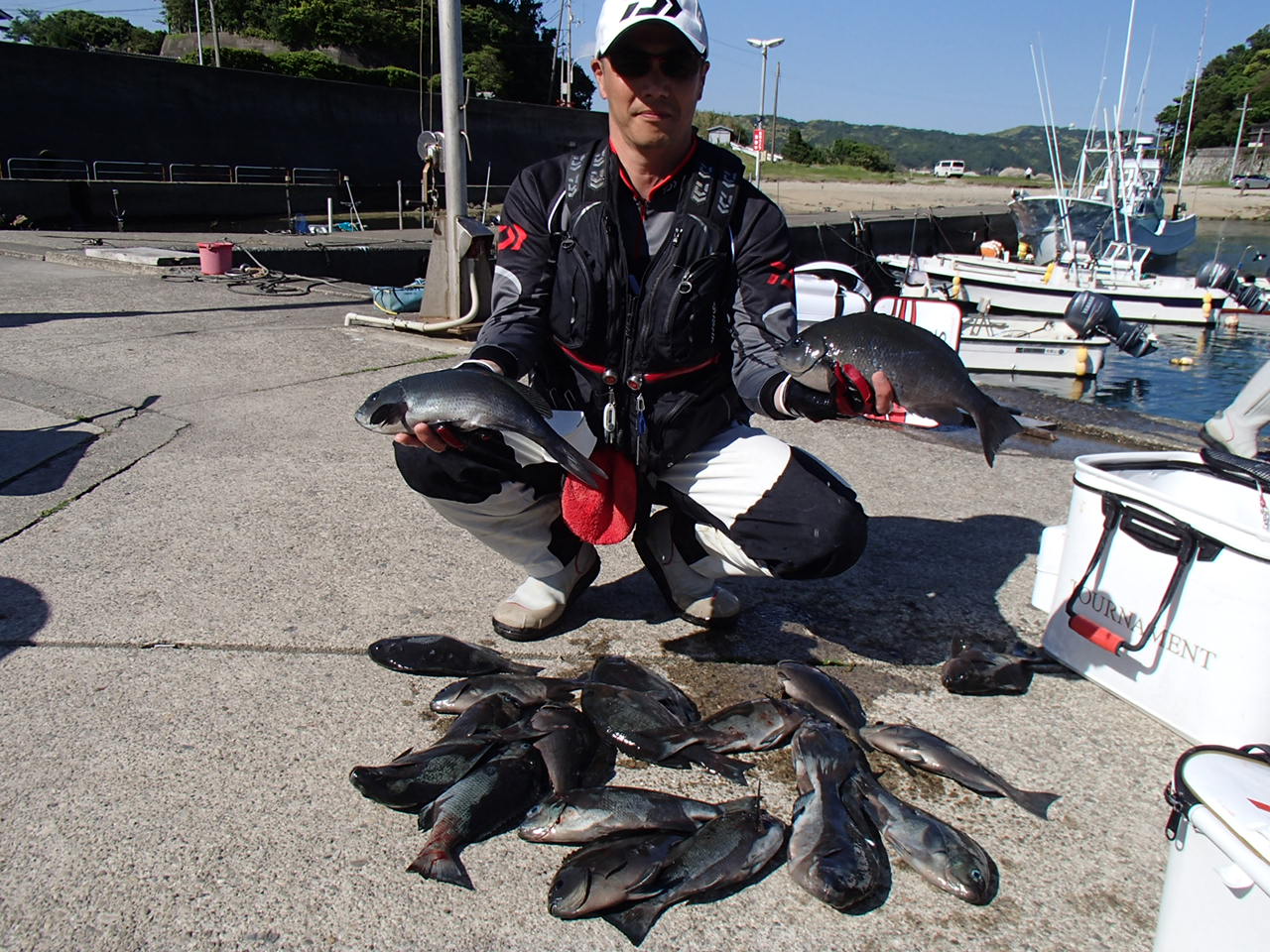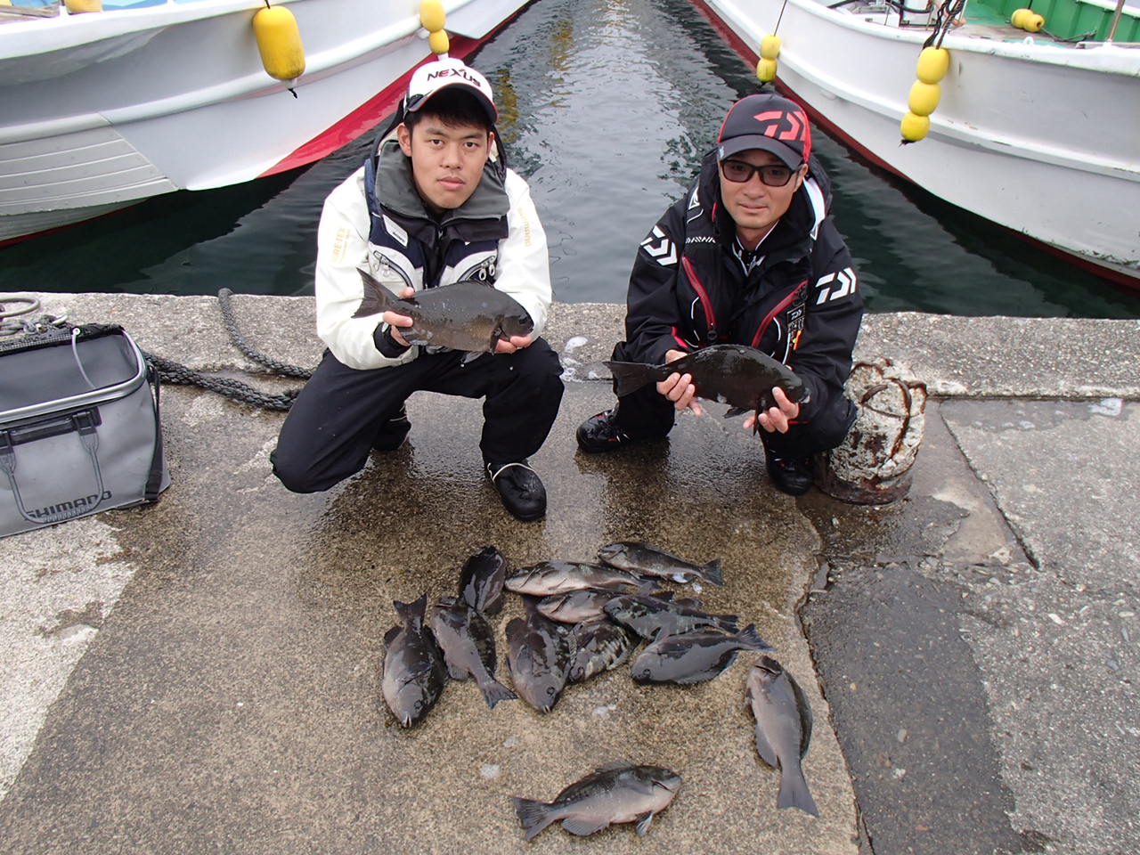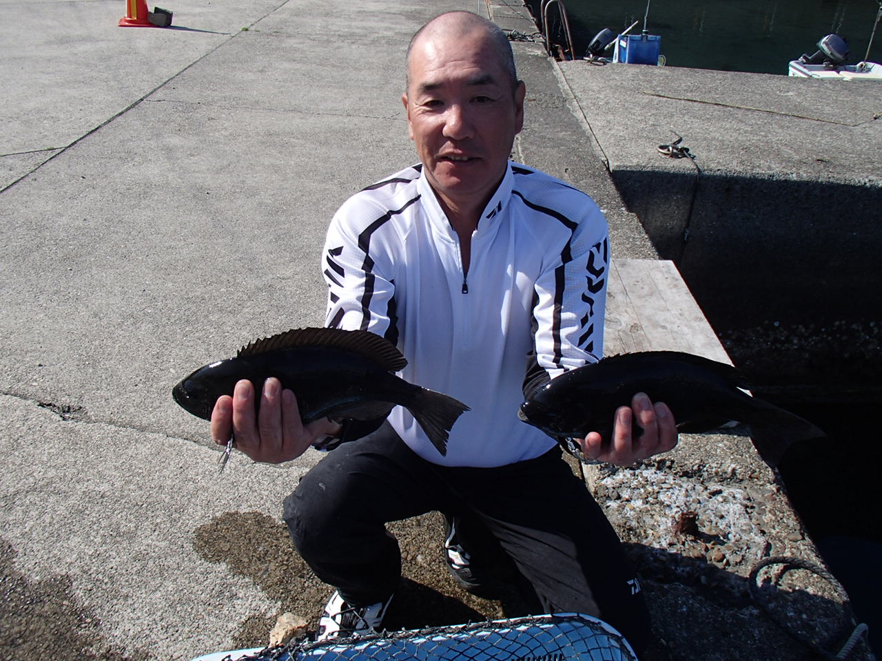双子の親で大阪市の藤本さん2人30~34cmのグレ7匹