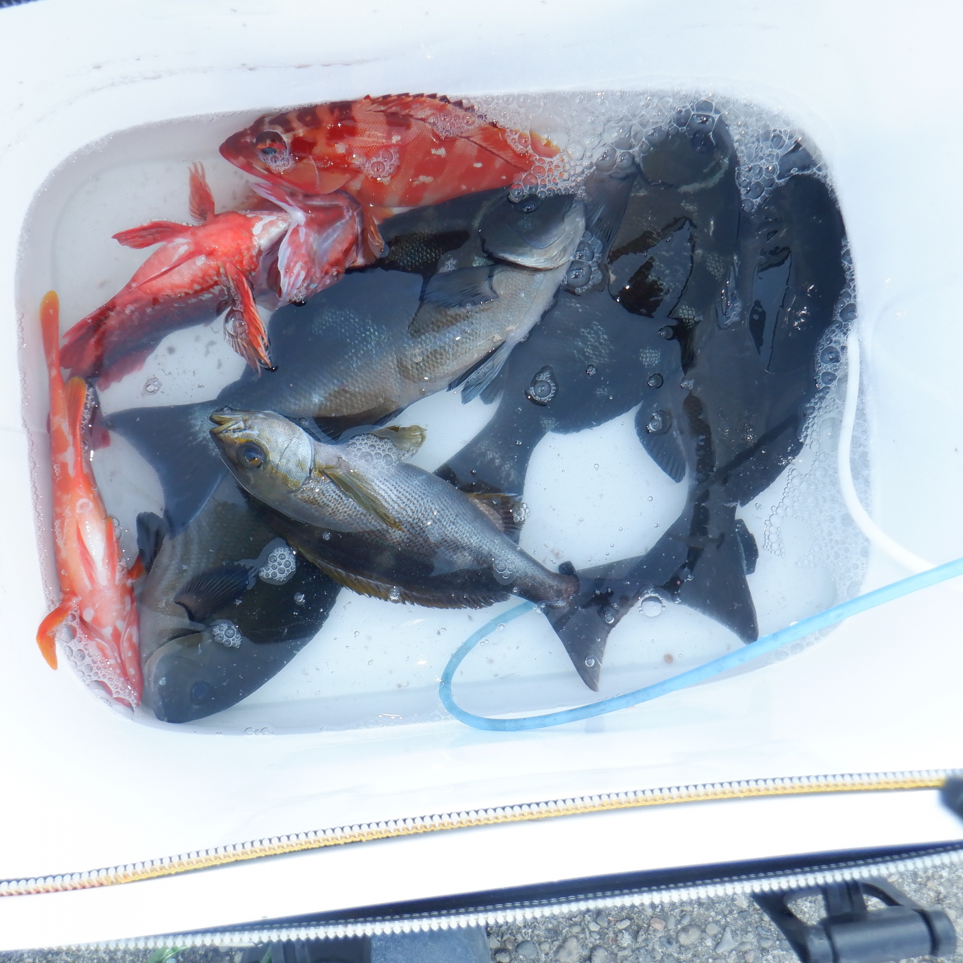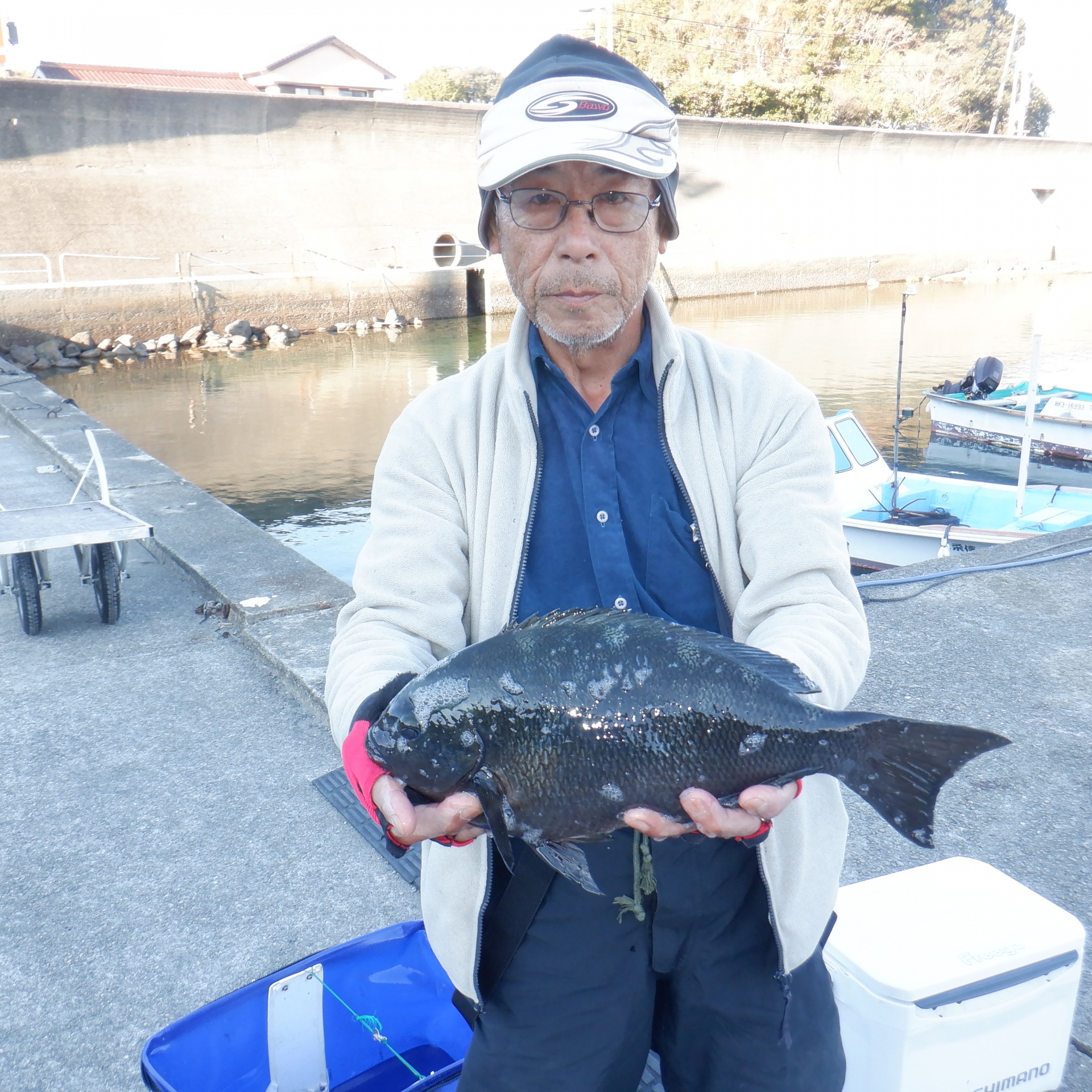 白崎で井谷さん30~40㎝のグレ4匹と35cmのイサギ1匹