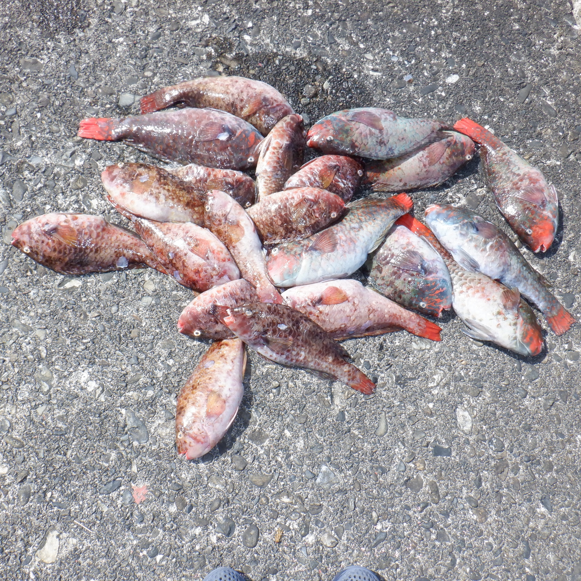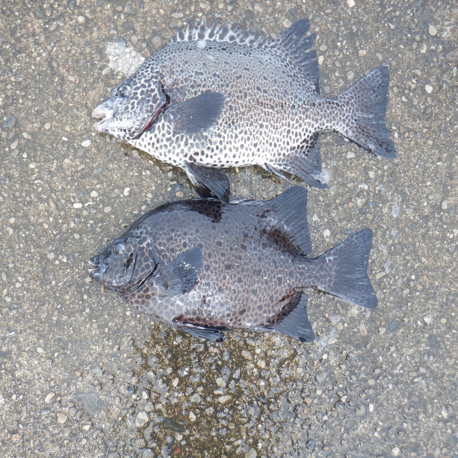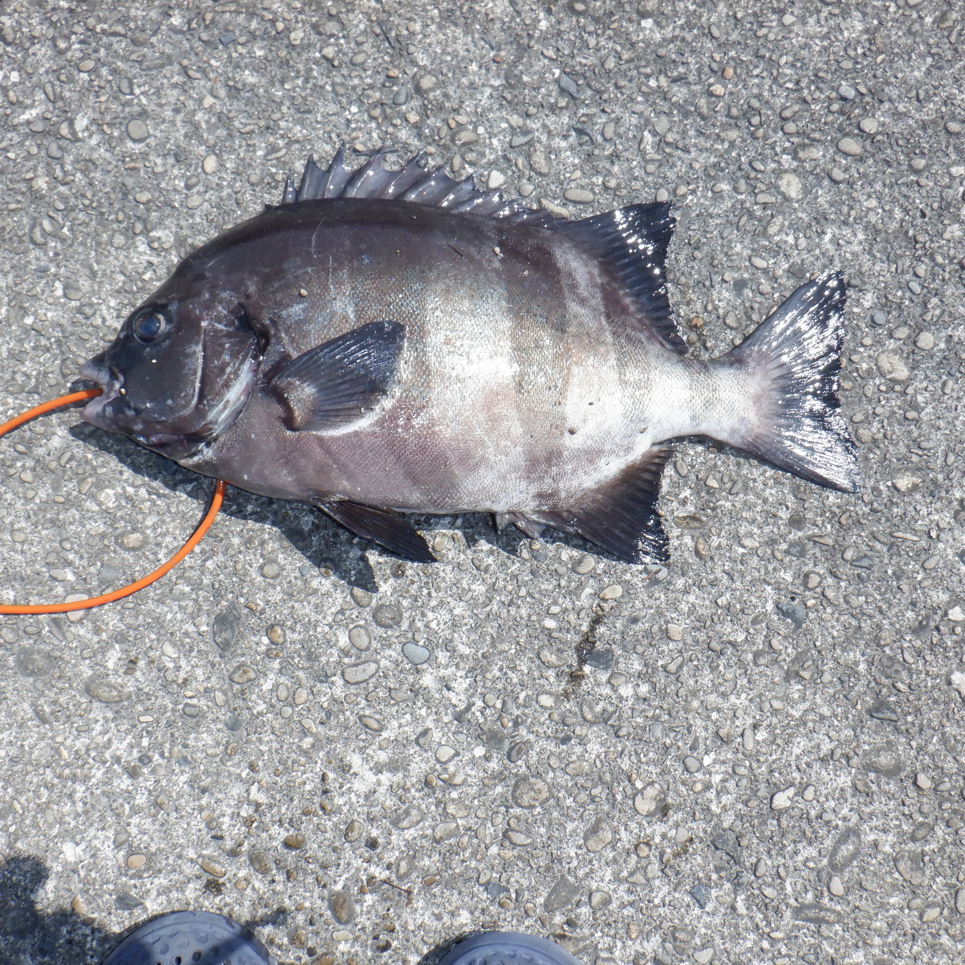 沖の赤島で富樫さん50㎝のチヌと30㎝のアカハタ2匹
