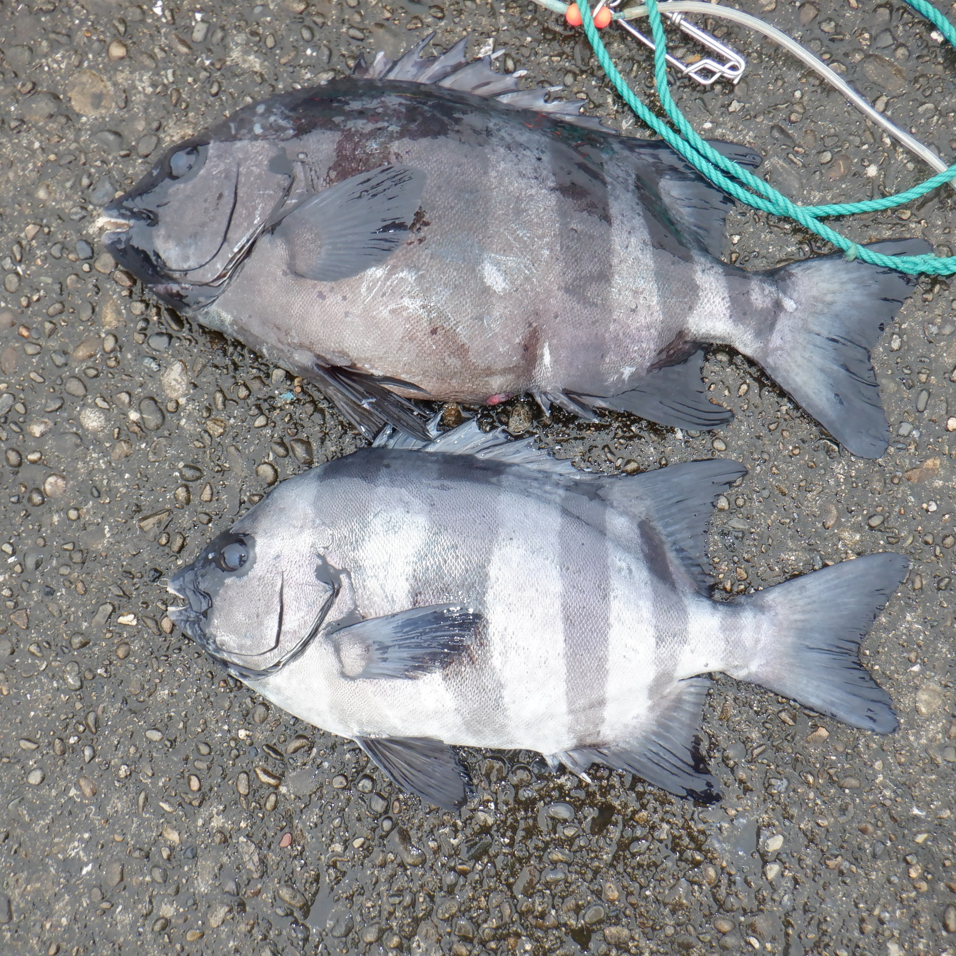 親で福田さん50㎝の石鯛ストリンガーからバラシ