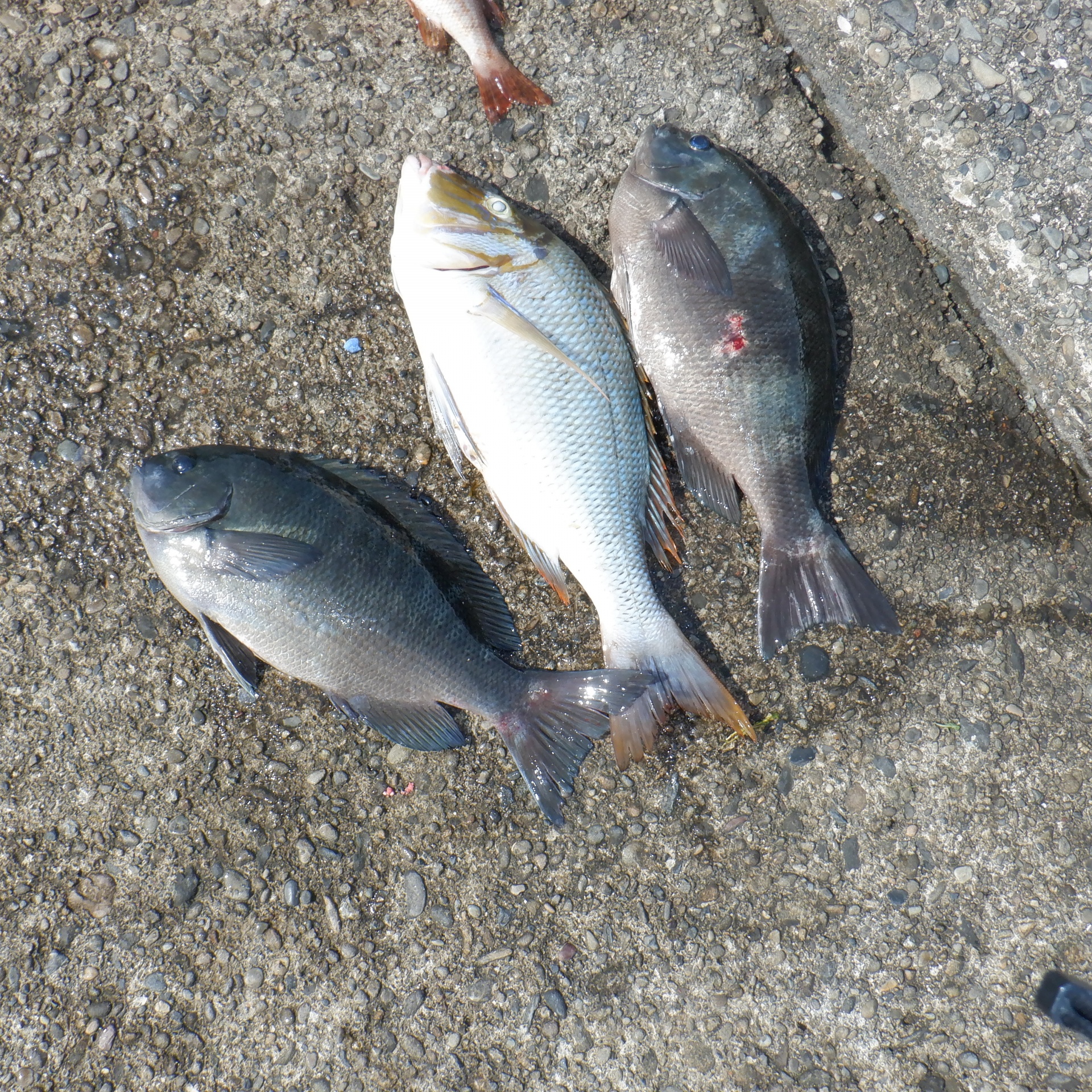 沖のカンゴメで稲垣さん30~35㎝のグレ3匹