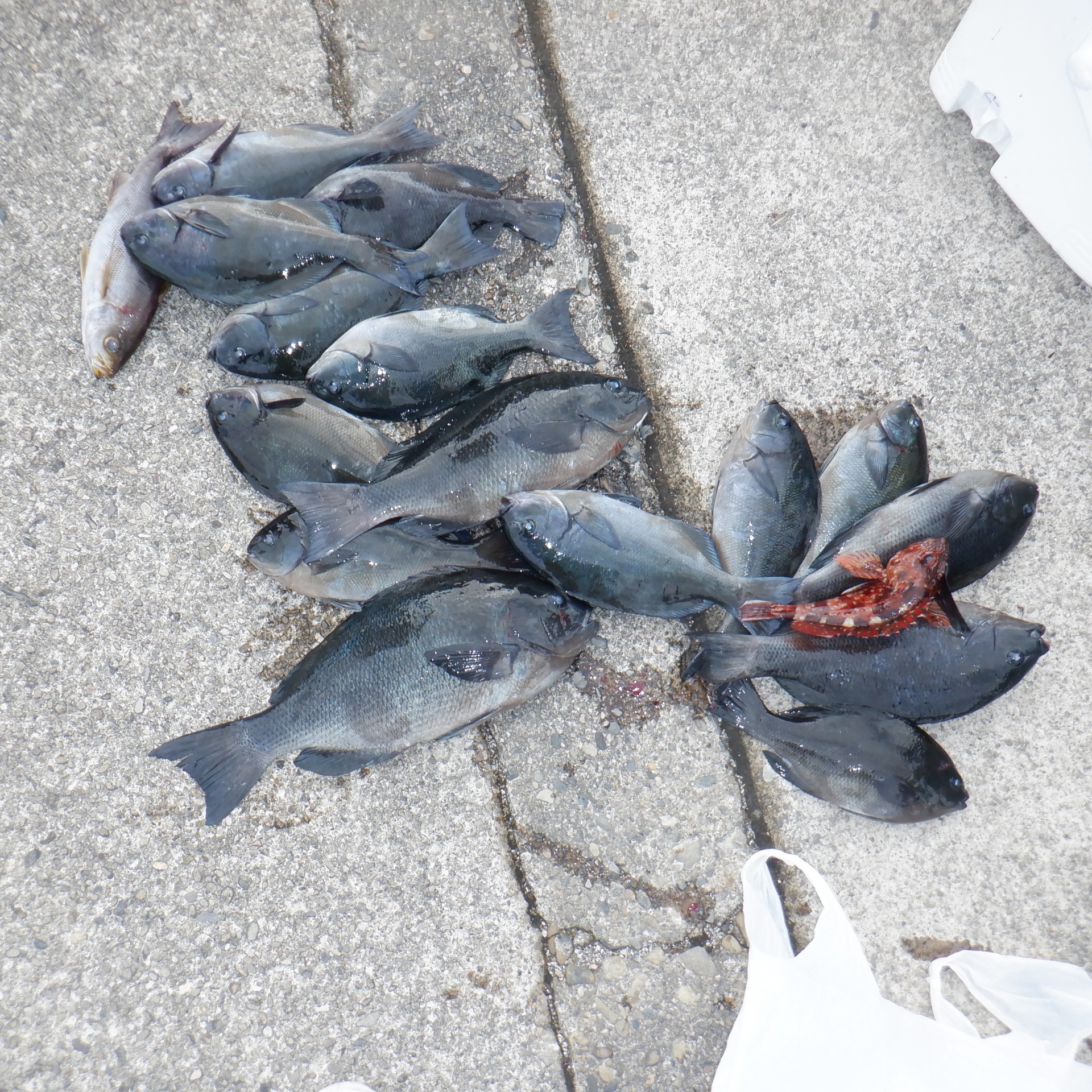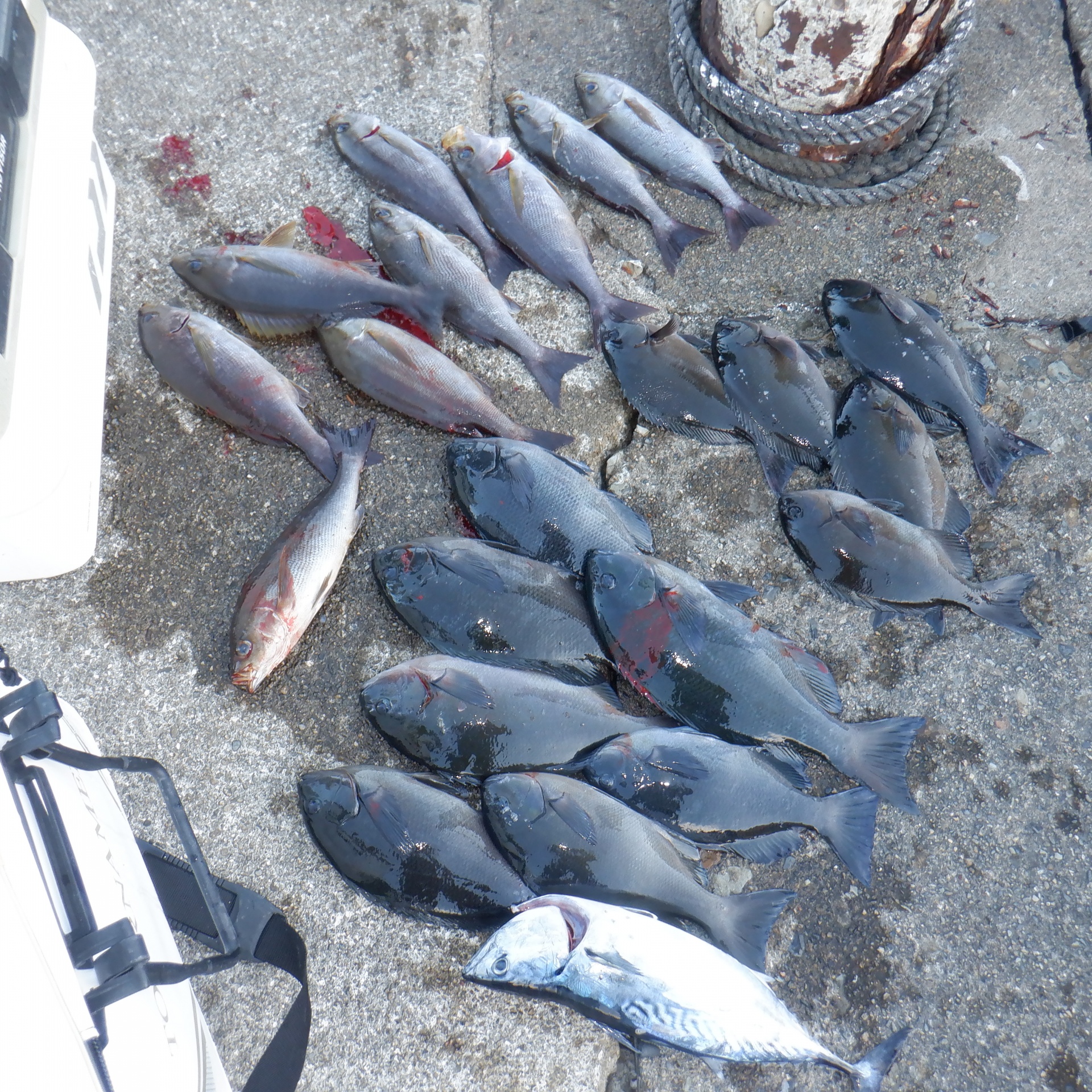 助八で篠塚さん29~34㎝のグレ14匹30~34㎝のイサギ4匹