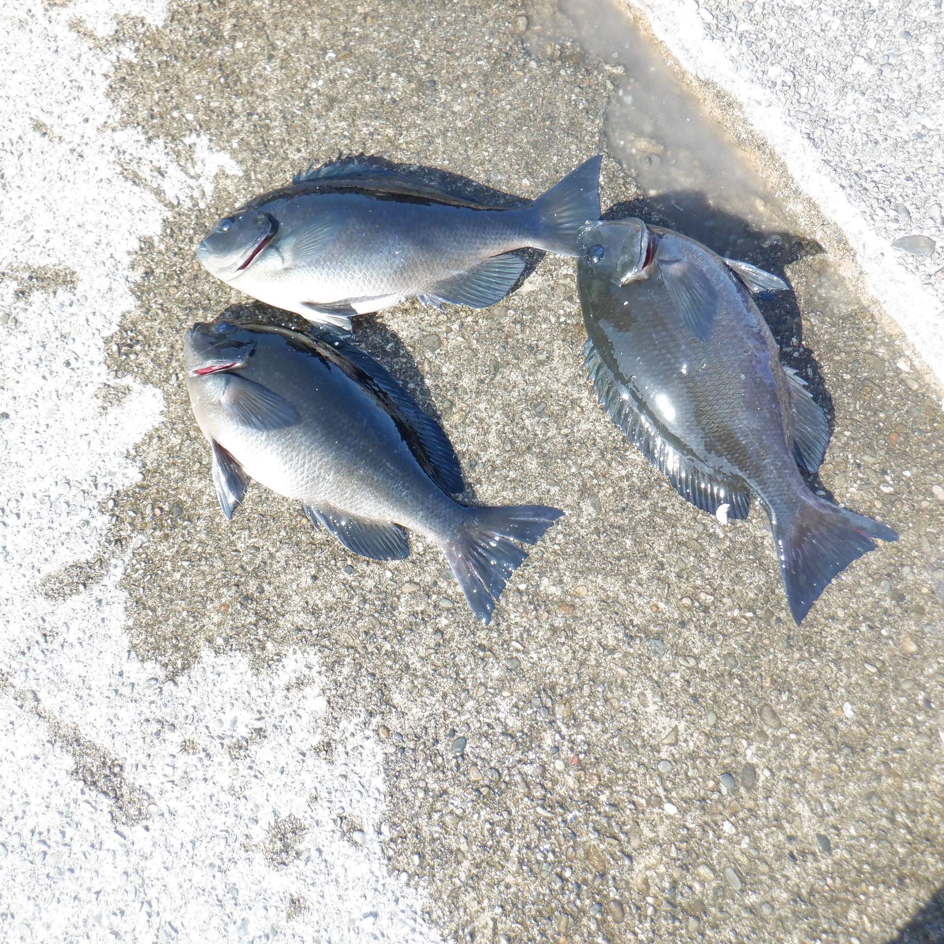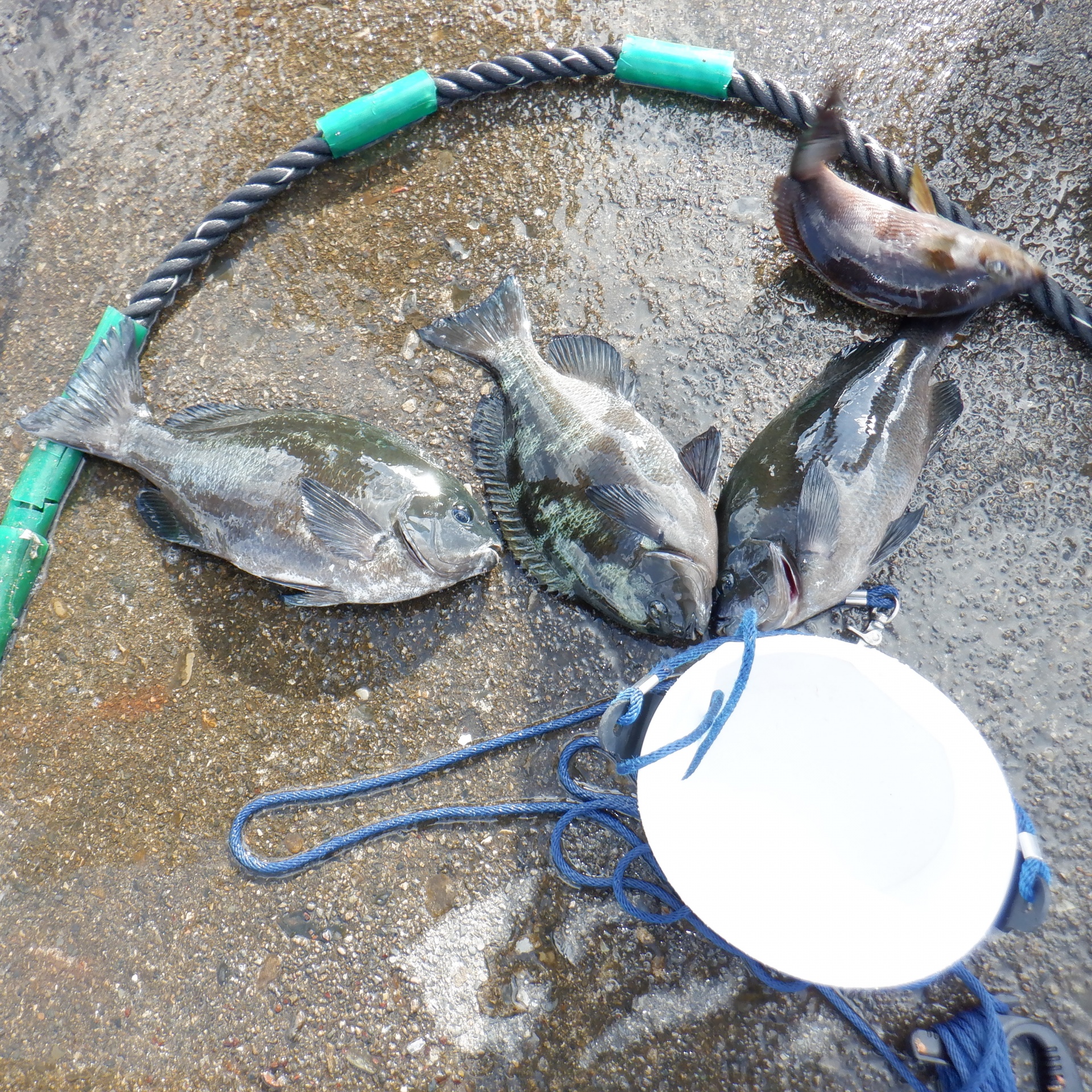 潮吹き裏で古川さん35~39㎝のグレ3匹