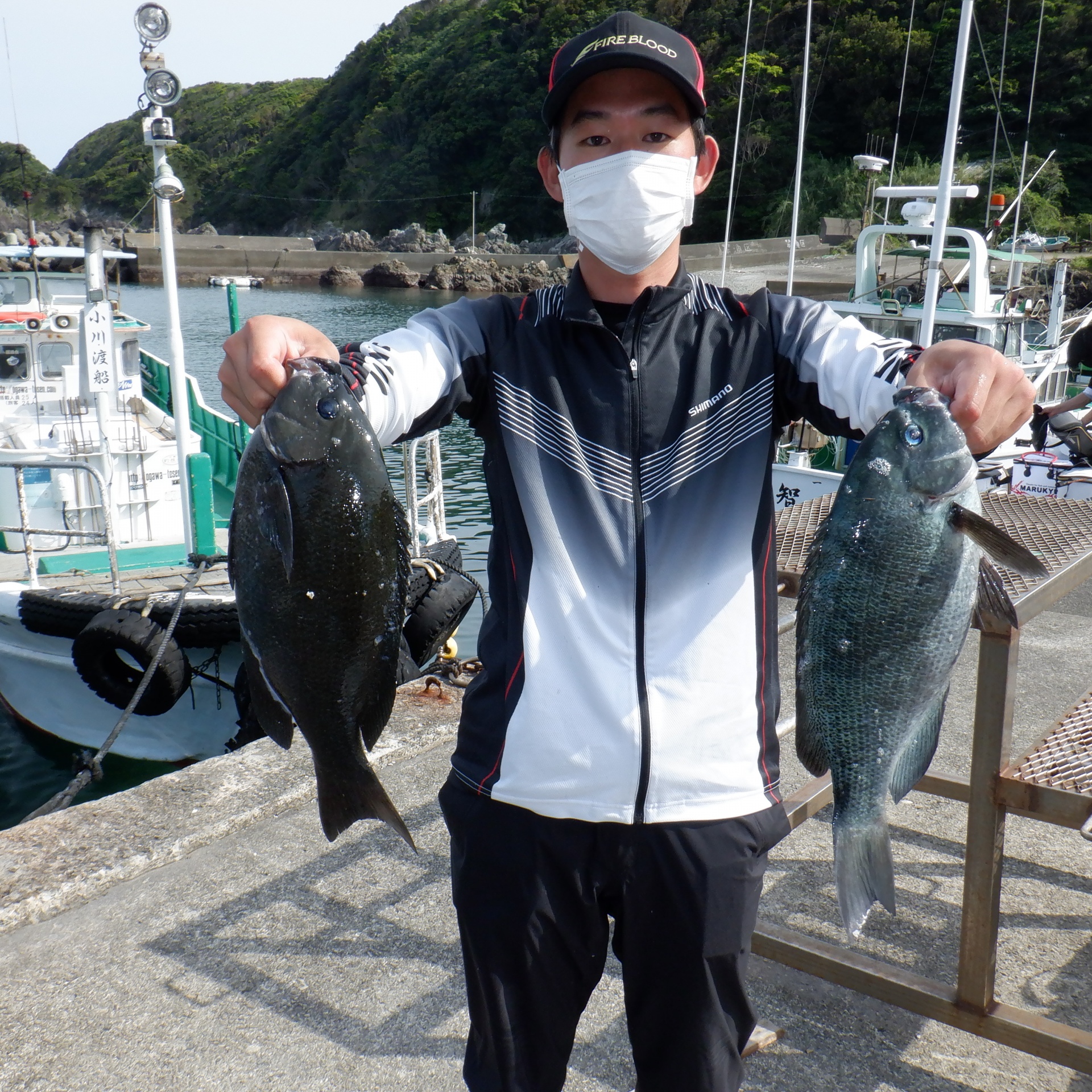同磯で藤田さんグレ2匹
