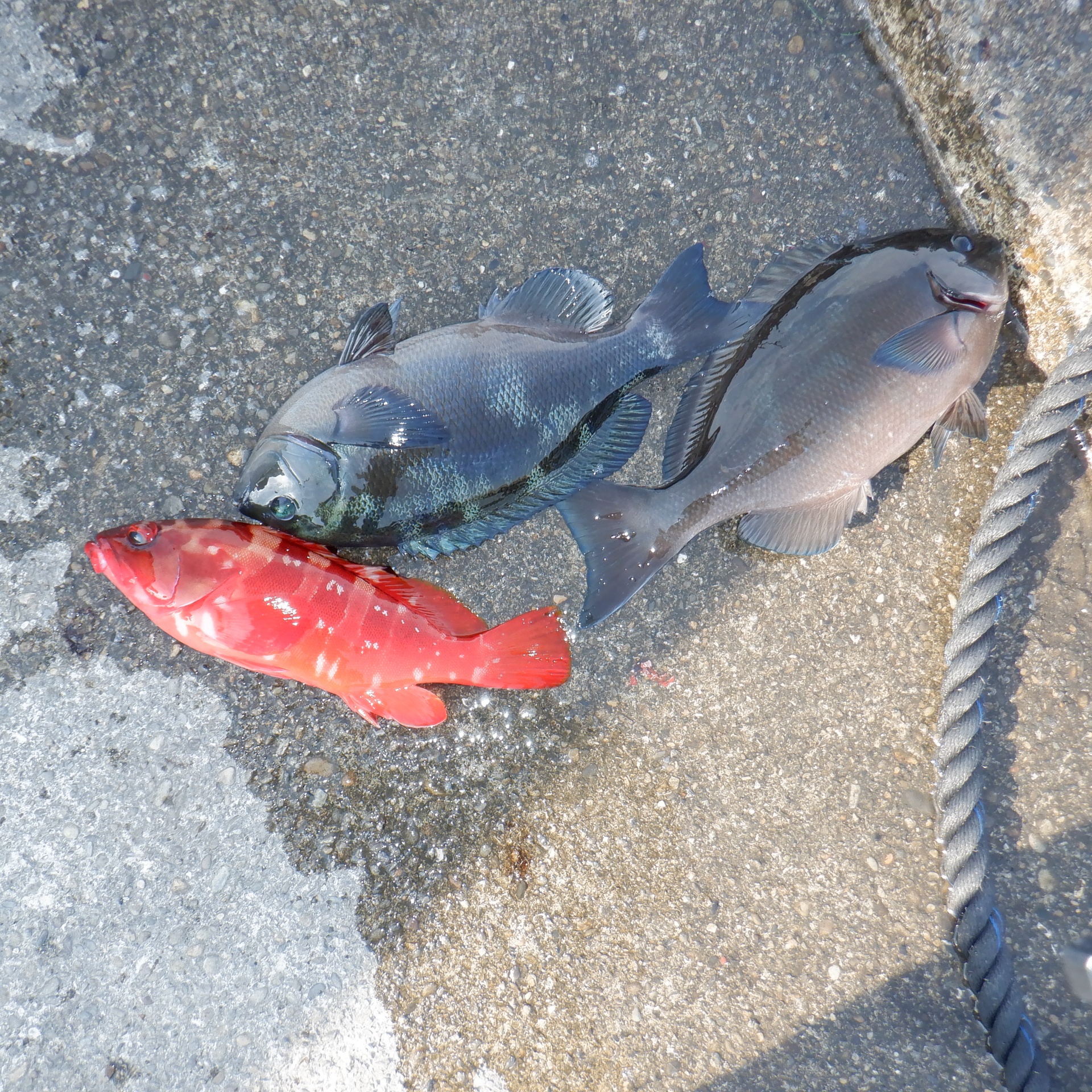 沖の赤島で大城さん2人33~35㎝ 3匹