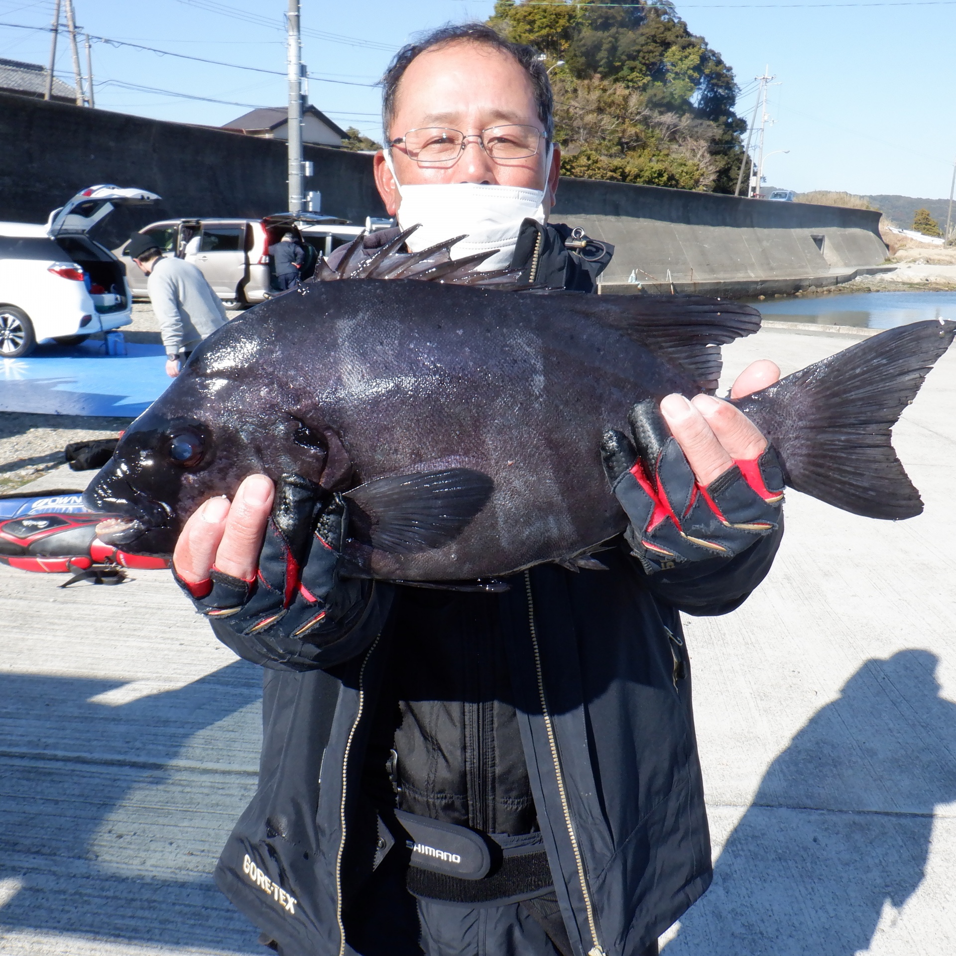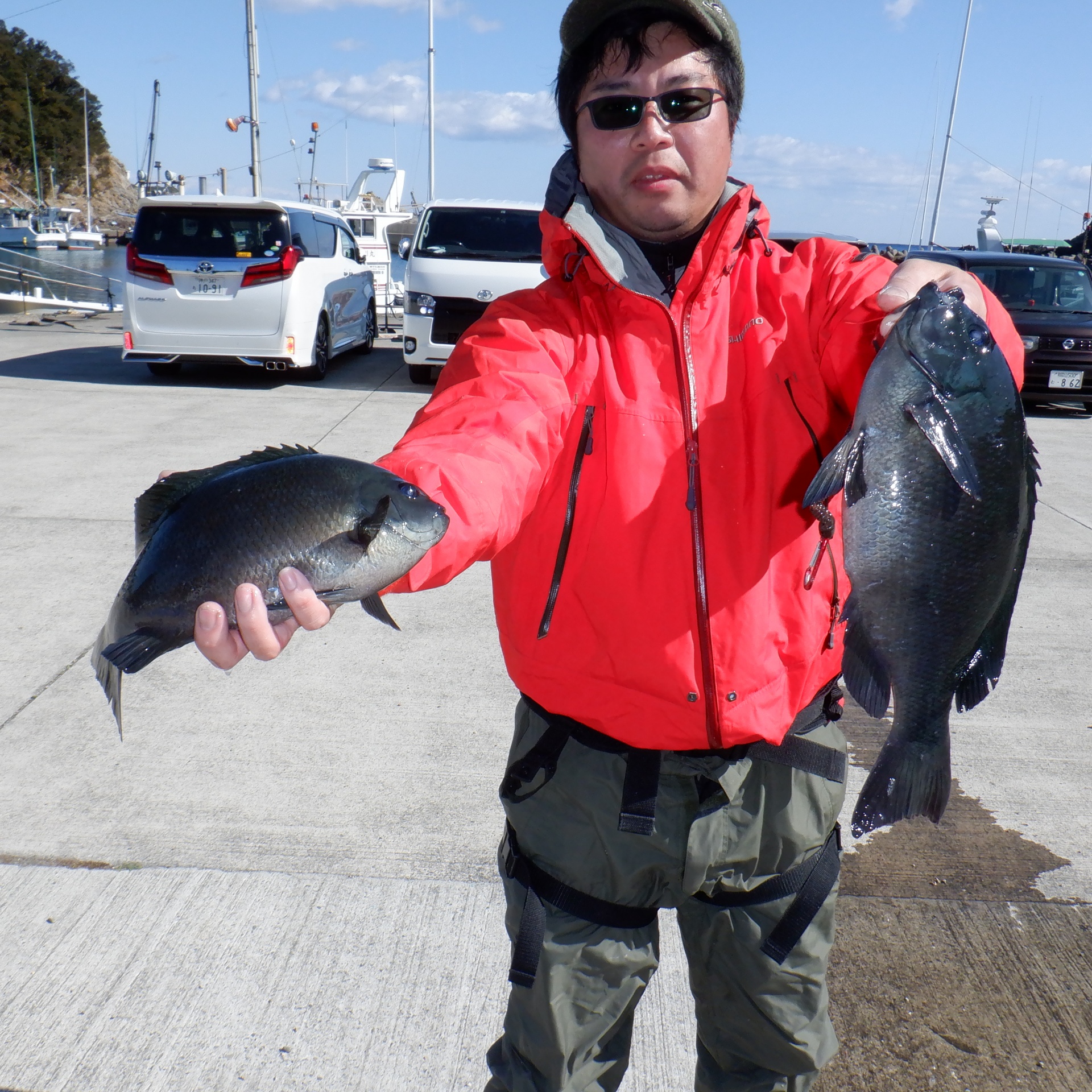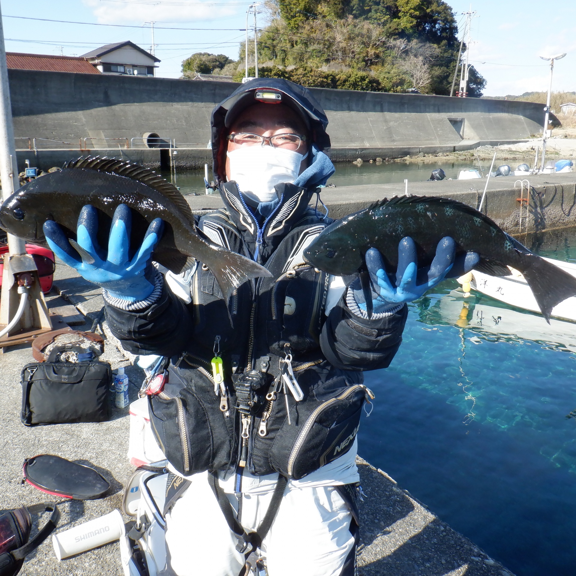 沖の長島で木村さん2人27~35㎝のグレ5匹