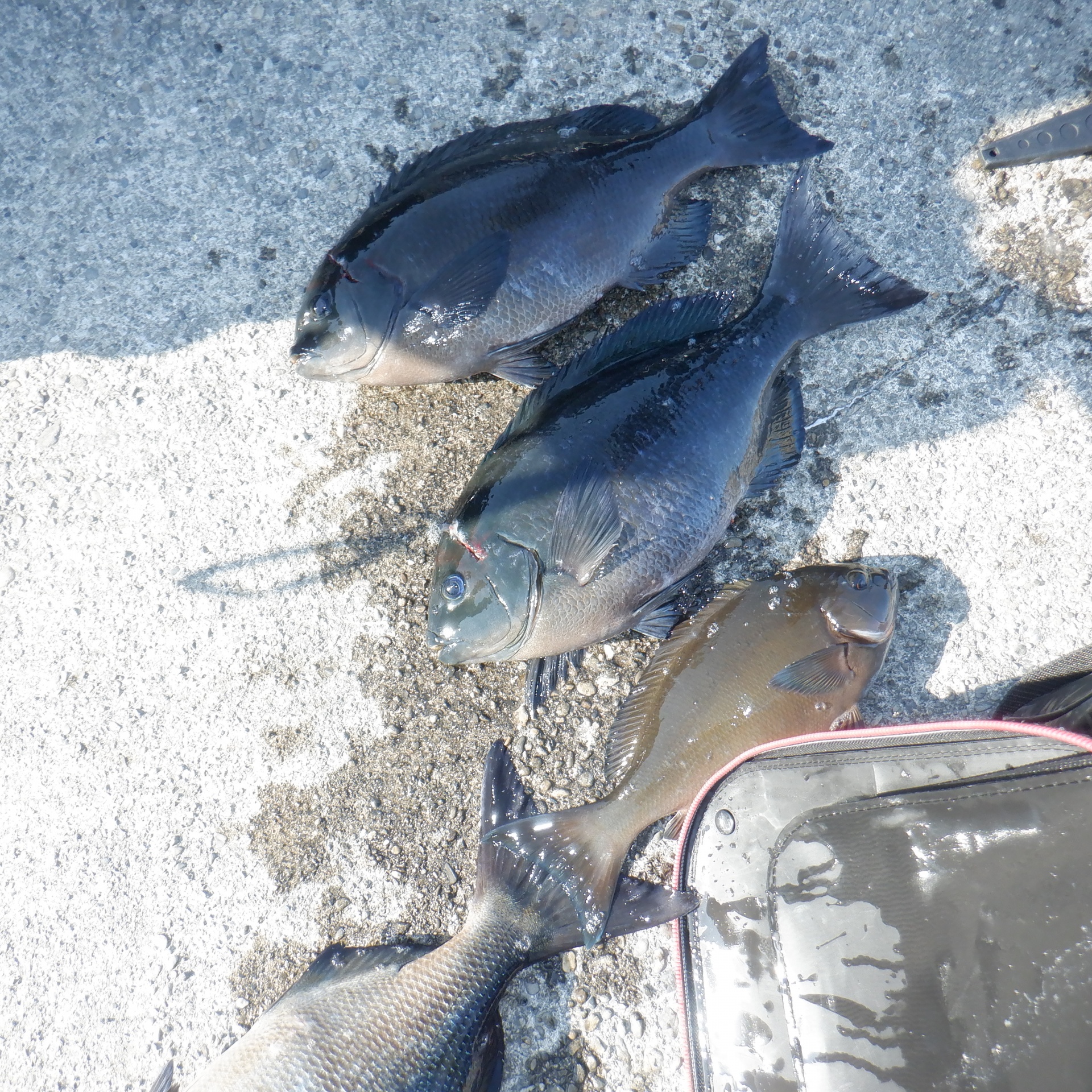 助八で石郷岡さん32㎝のグレ1匹とイサギ2匹
