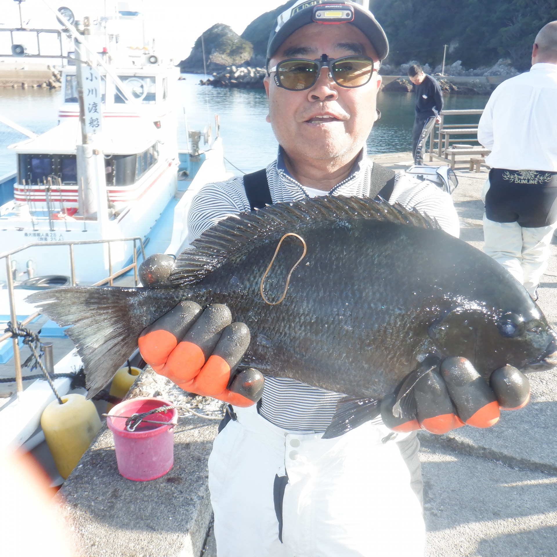 沖のカンゴメで藤田さん2人30~35cmのイサギ5匹