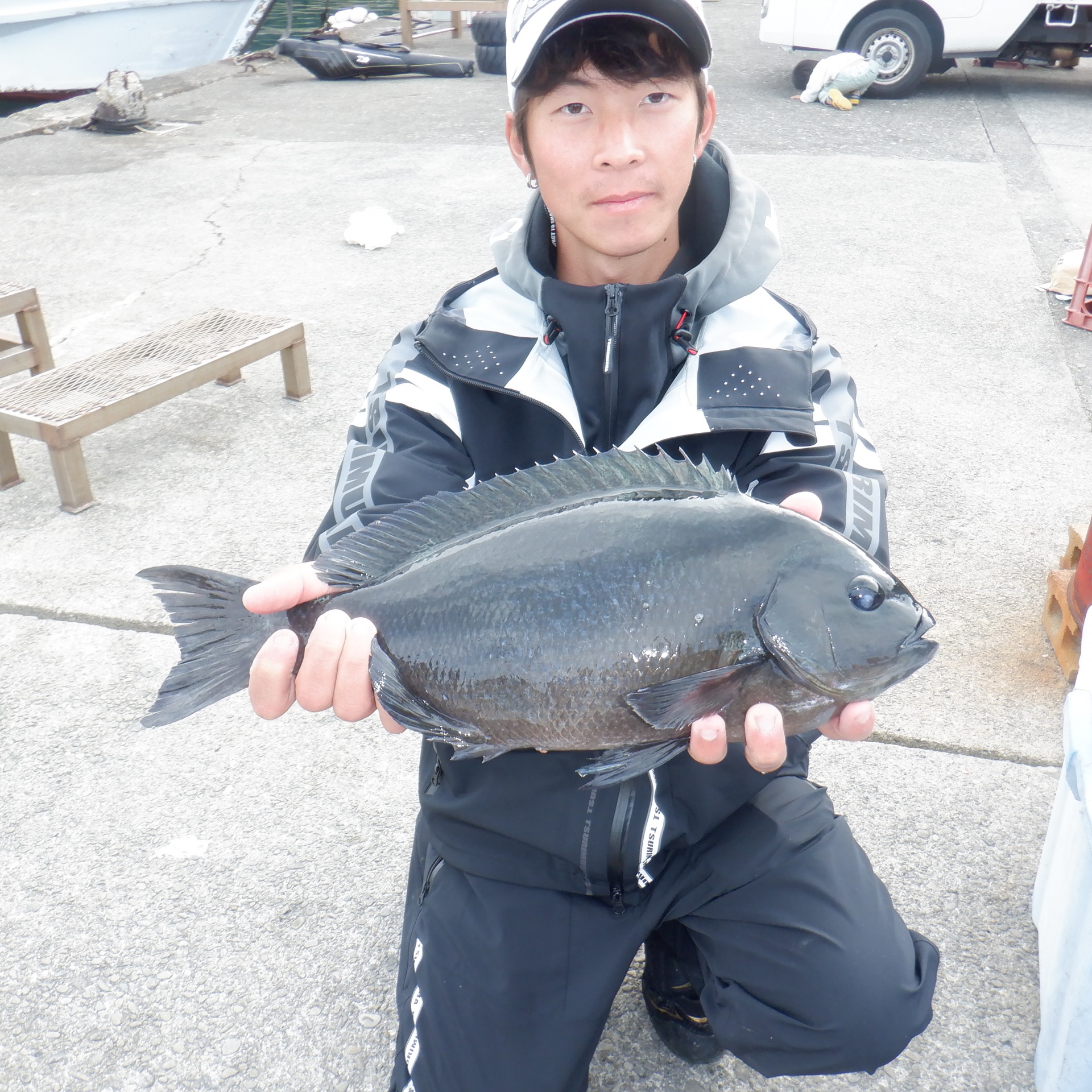 同磯で遠茂谷さん37㎝のグレ1匹