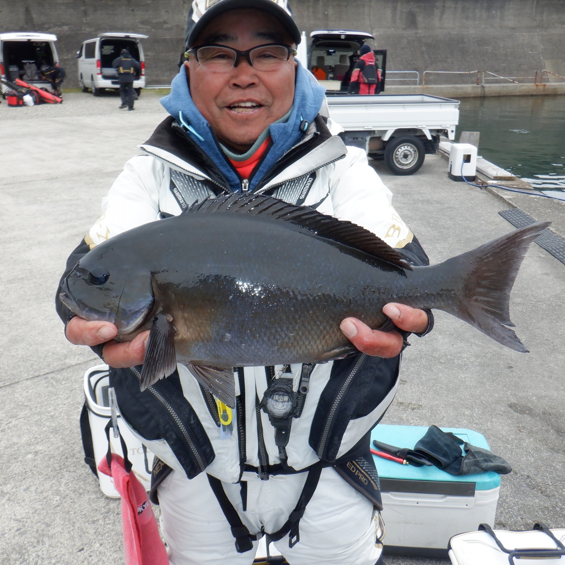 沖の赤島で利生さん2人37~40㎝のグレ3匹