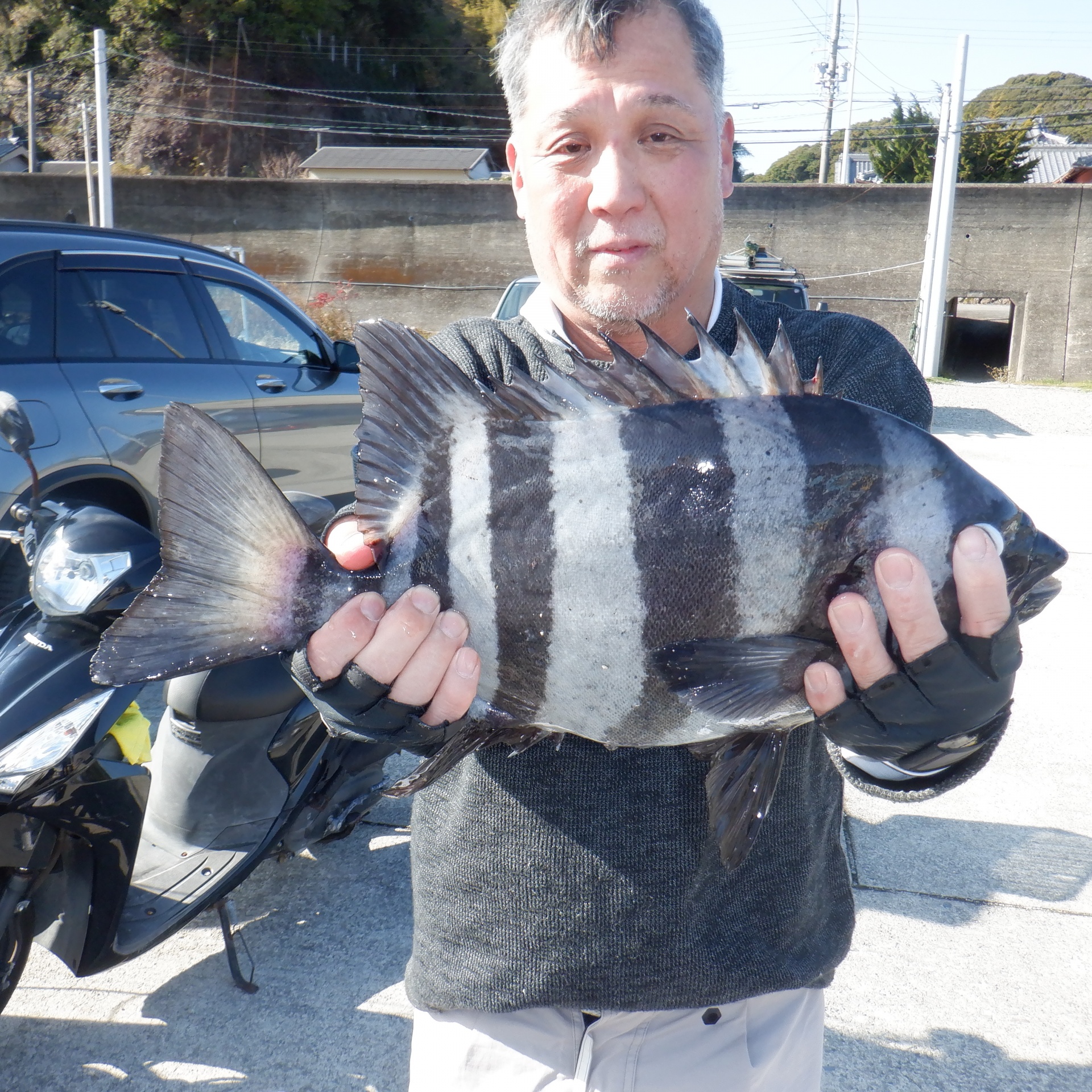 丸島で北紺さん35~38㎝のグレ4匹